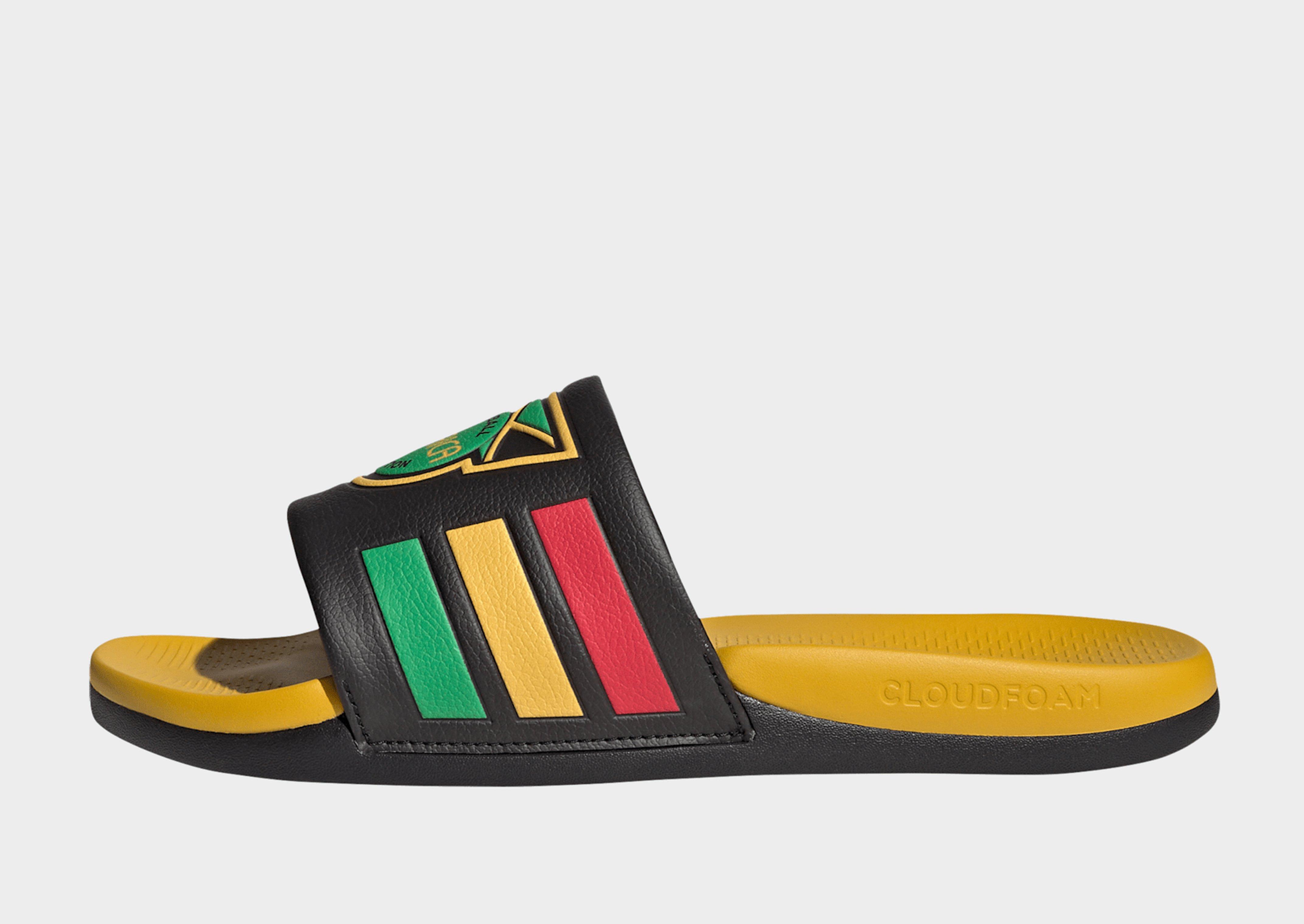 The Adilette Comfort 2.0 Jamaica Slides are designed to offer a refreshing take on a classic, blending style with functionality. The bold design makes them a standout addition to your everyday wardrobe.Cloudfoam technology provides a holistic comfort experience from step-in to stride. Designed for an ultra-soft step with extra cushioning. The padded bandage strap allows for easy step-in.These adidas slides will help you to feel comfortable and stylish at home or running errands. Wear with jeans and a hoodie for a casual and easy-to-wear outfit.