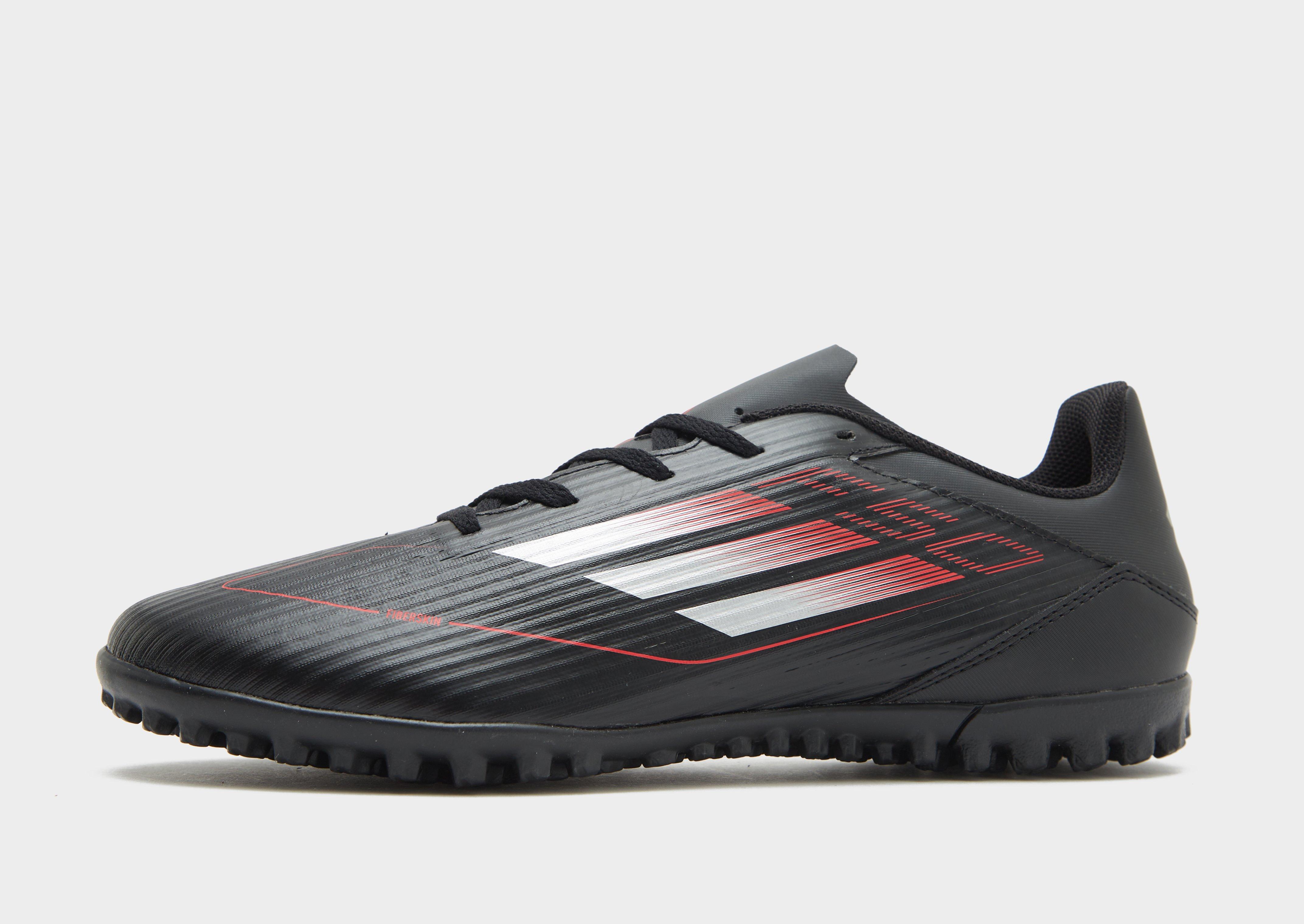 Bring pace to the pitch with these men's F50 Club TF football boots from adidas. In a Black and Lucid Red colourway, these boots have a durable Fiberskin upper, made form at least 20% recycled material, that's lightweight for added speed. They feature a lace fastening to lock you in, with a padded collar for support, while underfoot, they sit on a lugged rubber outsole for traction on artificial surfaces. Finished up with 3-Stripes, the Performance logo and F50 branding. | IE1224