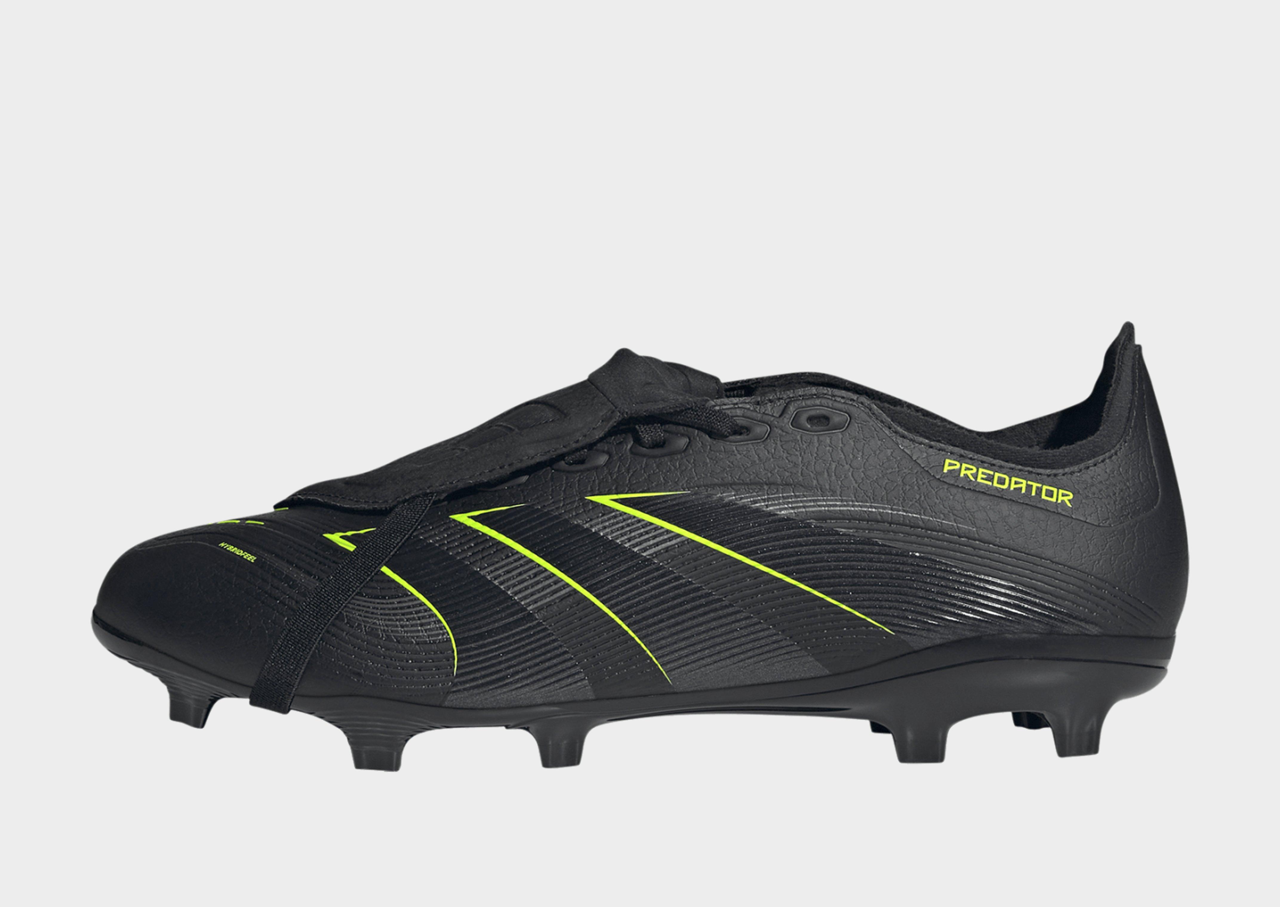 Discover the difference between aiming to score and knowing you will with adidas Predator boots that are crafted for goals. These League boots have a Hybridfeel upper that incorporates an all-over 3D texture, a fold-over tongue and grippy Strikescale fins to help you manipulate the football during strikes. A Controlplate outsole keeps you stable on firm ground and artificial grass.