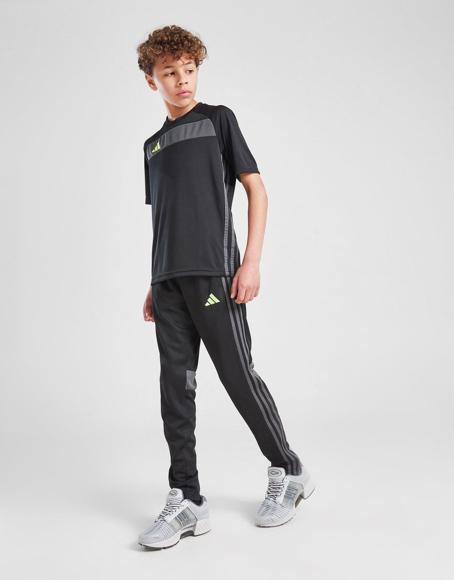 Step out on the pitch in the 3-Stripes with these juniors' Tiro 25 Track Pants from adidas. In a Black colourway, these JD-exclusives are made from recycled polyester fabric, with sweat-wicking AEROREADY tech for cool comfort. They feature a drawcord tie at the elastic waistband and zippered ankles for a custom fit. With zip-fasten pockets to hold the essentials, they're finished off with Grey Six 3-Stripes and a Solar Yellow Performance logo. Machine washable. | JM1610