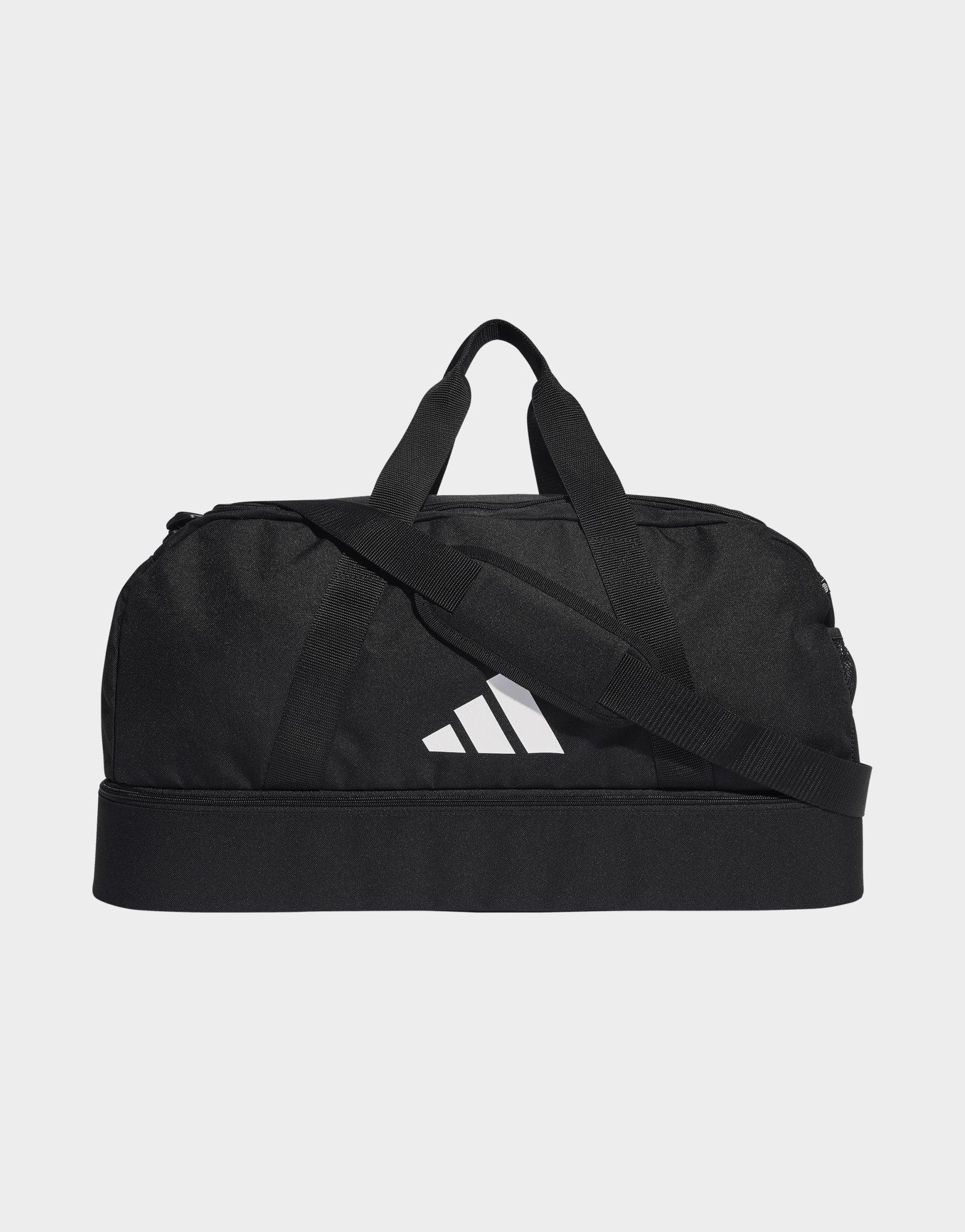 This adidas Tiro League duffel bag is perfect for carrying your football gear to and from the game. The hard-case bottom compartment keeps your essentials safe and organised, and the side mesh pocket is perfect for holding a water bottle or half-time snacks. The large U-shaped opening means no more rooting around for your gear.Made with a series of recycled materials, and at least 40% recycled content, this product represents just one of adidas' solutions to help end plastic waste.