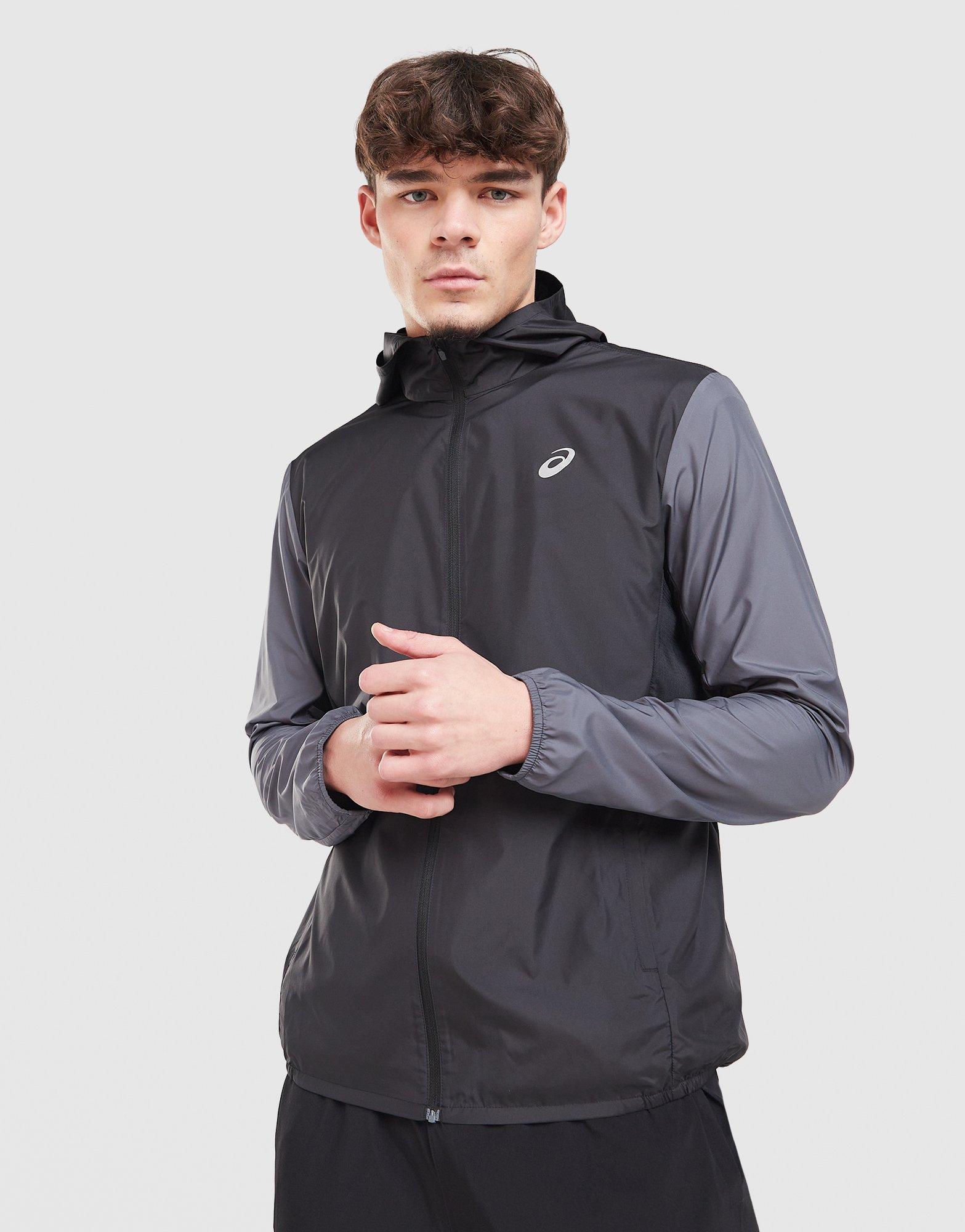 Training sessions to city links, this men's ASICS Core Colour Block Jacket always has you covered. In a black and grey colour block design, this lightweight woven jacket has a zip-up fastening and a hood for extra cover. Elastic trims hold it secure, and pockets stash your essentials away. Finished up with a classic ASICS logo on the chest. Machine washable. | Our model is 6'2" with a 37" chest and wears a size M.
