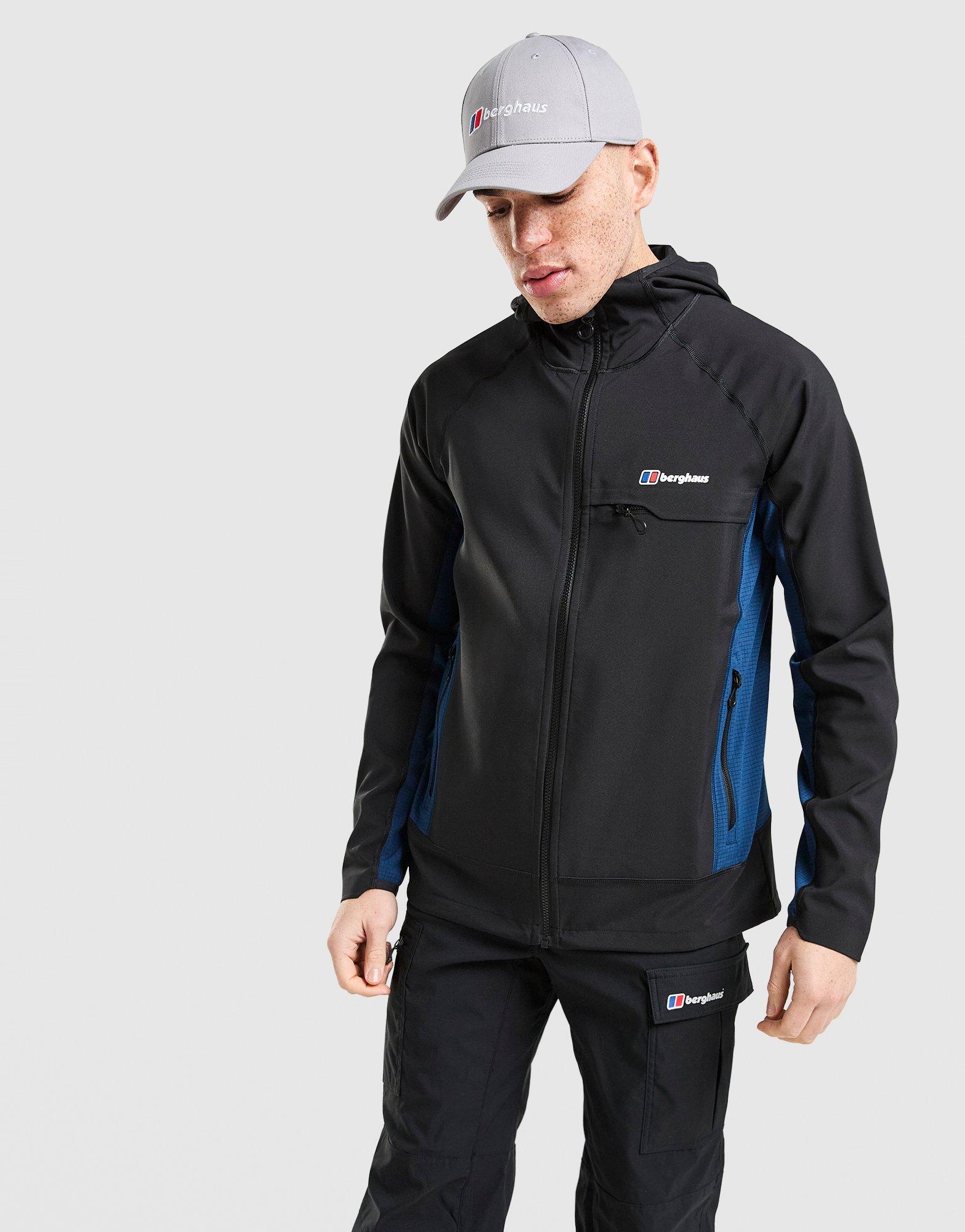 Layer up. Head out. This men's Lonnen Woven Full Zip Jacket from Berghaus is cut from smooth and durable fabric. It features a full-zip fastening and hood for custom coverage. With zip-up side pockets and a chest pouch for secure storage. Landing in black and blue, it's finished with signature branding. Machine washable | Our model is 6'0" with a 38" chest and wears a size M.