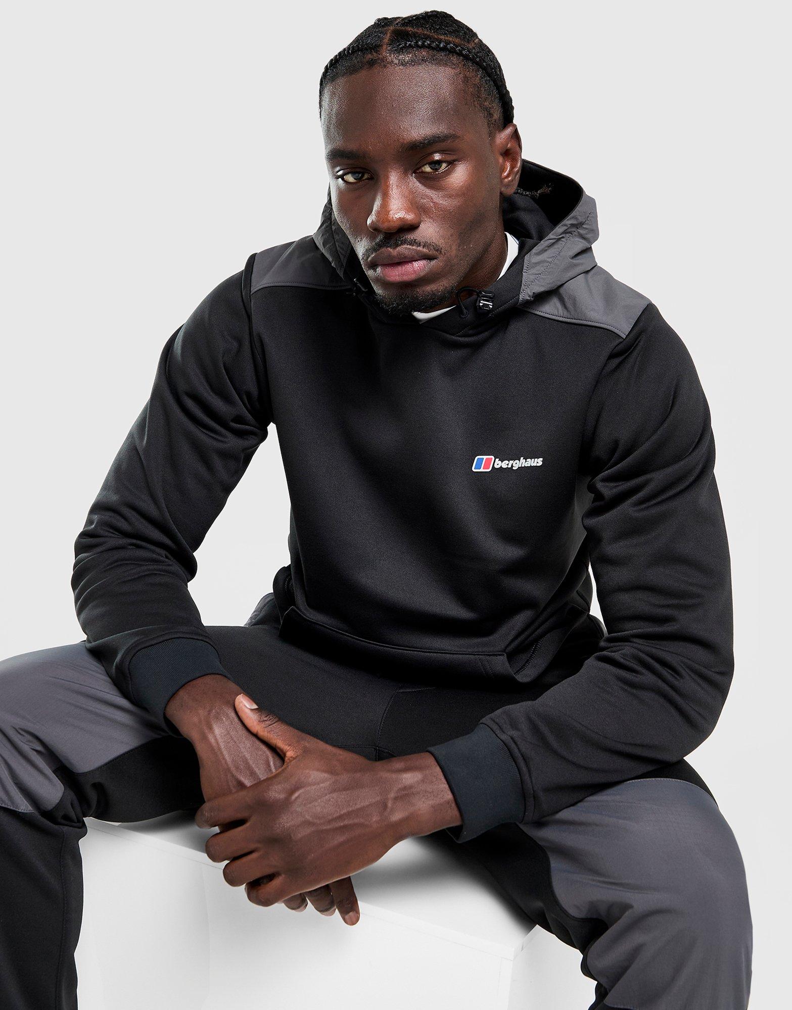 Streets to peaks. Berghaus is bringing the JD-exclusive energy with this men's Vangar Overhead Hoodie. Smooth fleece links with woven shoulder panels and a hood for coverage. Ribbed trims hold the shape. And a kanagroo pocket secures your stuff. Berghaus branding finishes things up. Machine washable. | Our model is 6'1" with a 36" chest and wears a size M.