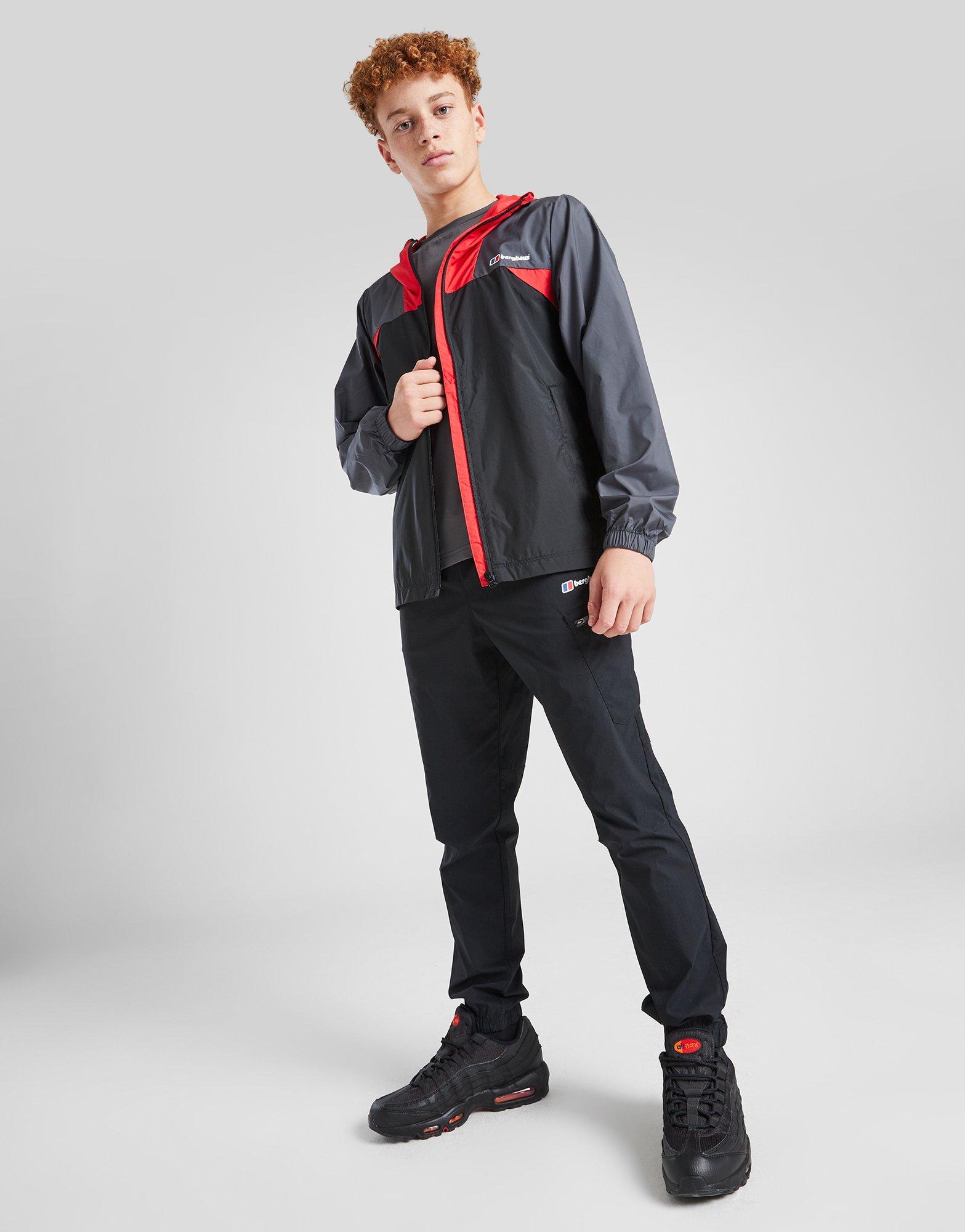 When the weather takes a turn, add an extra layer with this juniors' Windrunner Jacket from Berghaus. In a Black, Grey and Red colour block design, this JD-exclusive jacket is made from light, durable poly fabric for lasting wear. It has a full zip fastening and a hood with elasticated trims to amp up the coverage, while the ribbed cuffs lock out the cold. With side pockets for storage, it's signed off with a Berghaus logo to the chest. Machine washable.