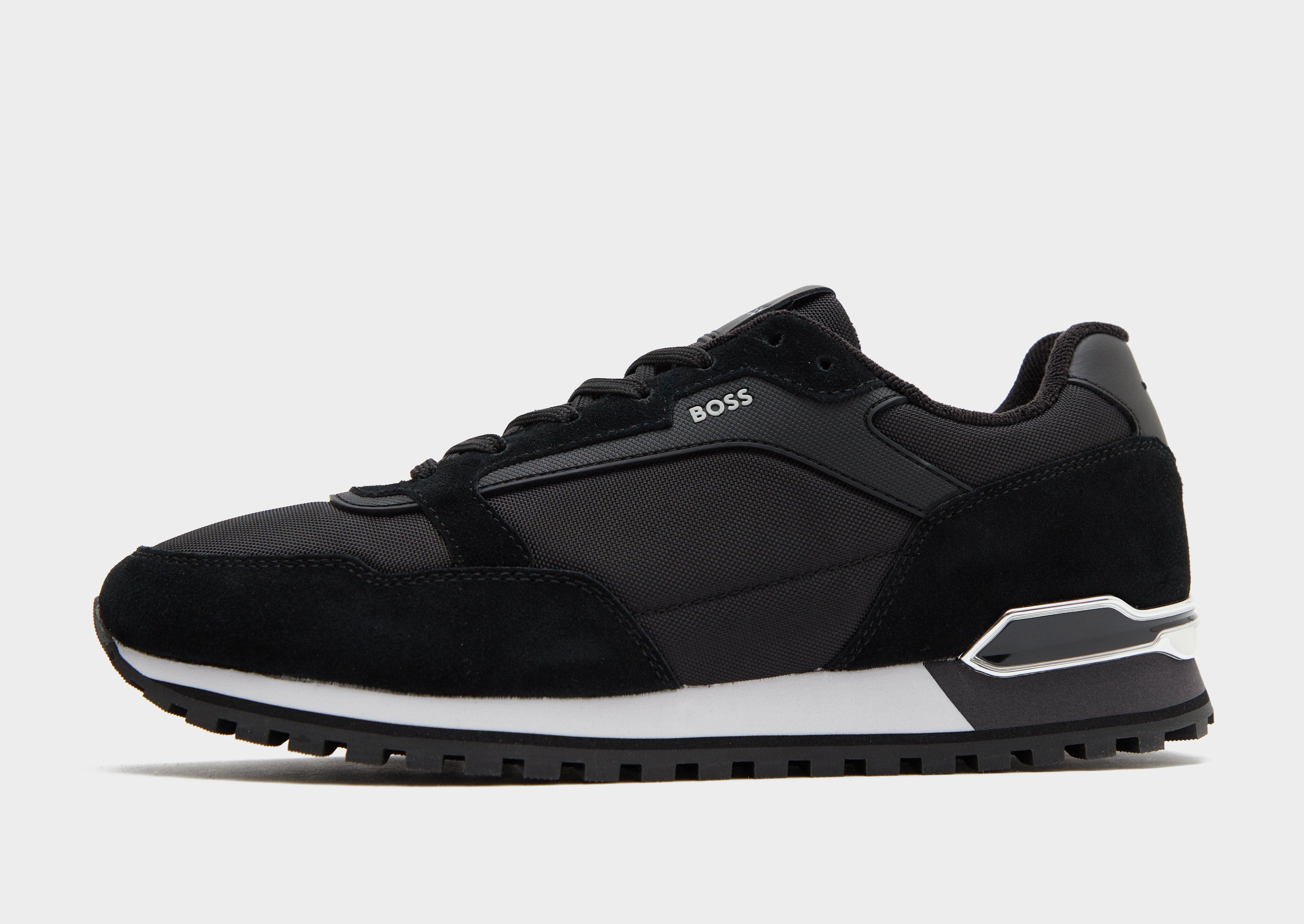 Add a premium hit to your rotation with these men's Parkour Run trainers from BOSS. In a Black colourway, these treads have a woven textile upper with synthetic leather overlays for lasting wewar. With a tonal lace fastening, they sit above a cushioned foam midsole with a tough rubber tread for traction. Finished with signature BOSS branding throughout.