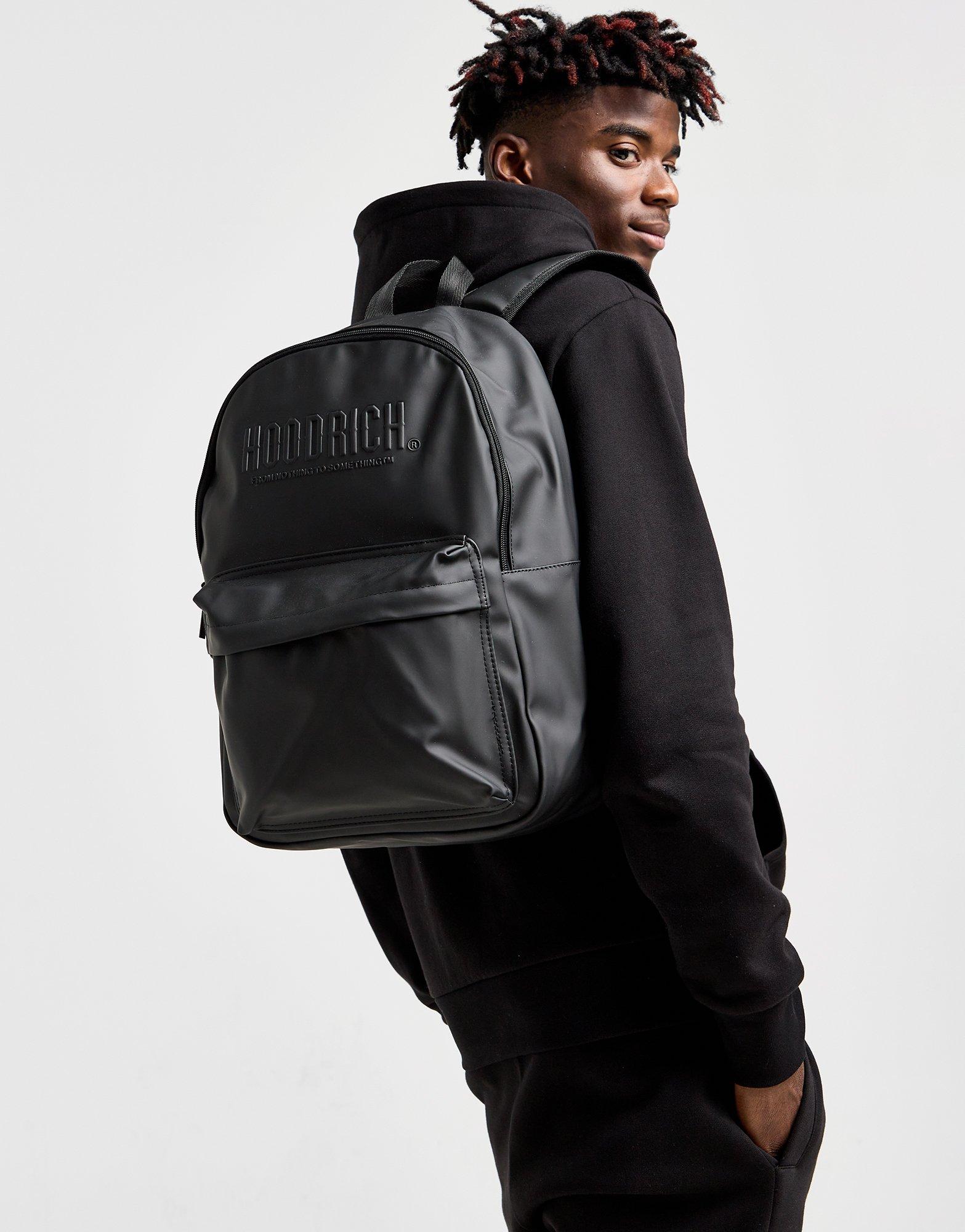 From the classroom to weekend travels, carry the essentials in style with this Raise Backpack from Hoodrich. In a Black colourway, this bag has a durable PU shell, with breathable mesh tech to the padded back and adjustable shoulder straps, while the inner is built from lightweight polyester. It features main and front zip compartments, with a laptop sleeve to the main space to secure it in place. Finished off with a haul loop at the top and embossed Hoodrich branding on the front. Spot clean. | (H: 41 x W: 30 x D: 14cm)