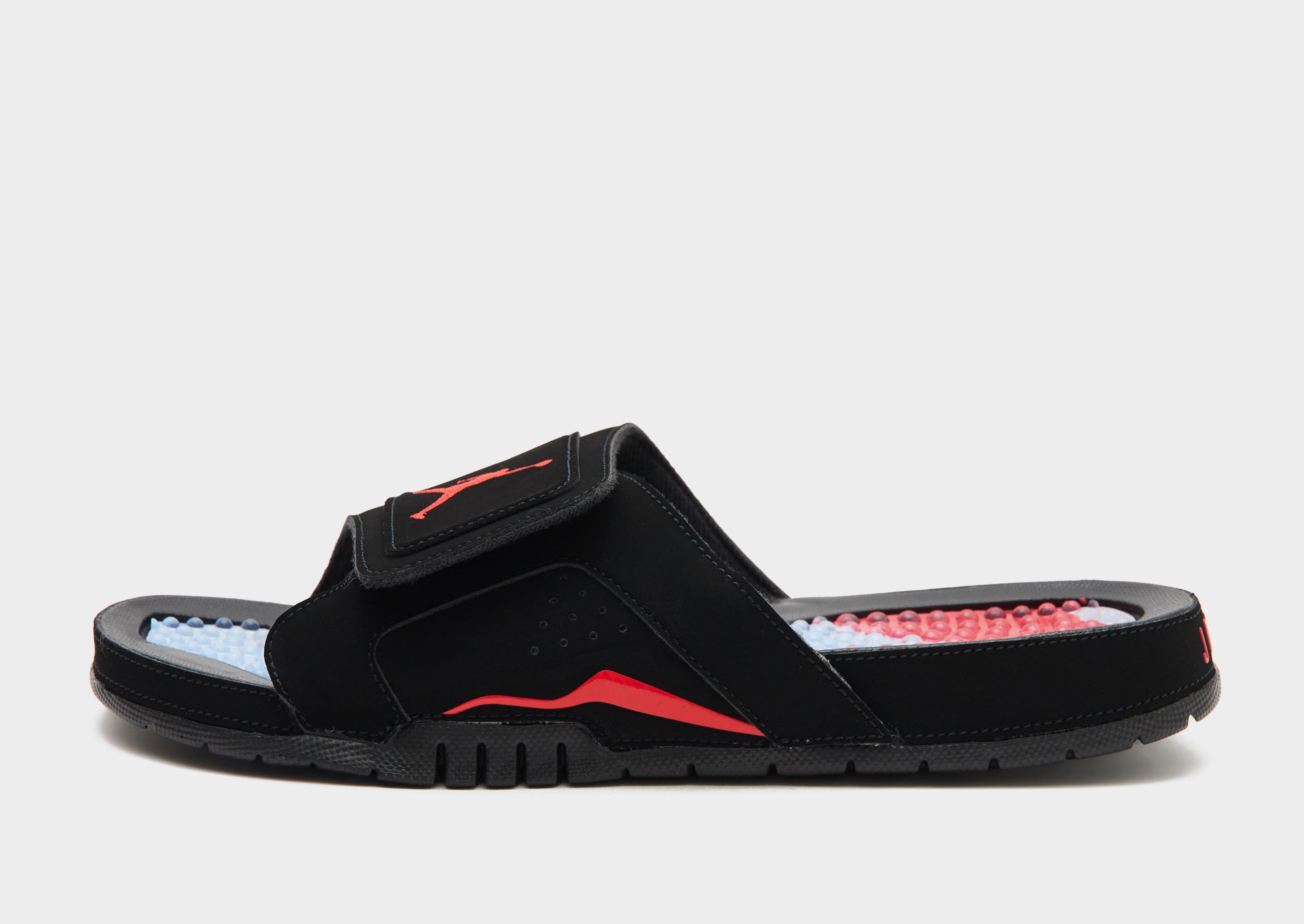 From post-game chills to pool days, these men's Hydro VI Retro Slides have you covered. In black with Infrared 23 highlights, these slides have an adjustable bandage-style strap made from synthetic leather. A non-slip footbed is made from plush foam for non-stop comfort. Finished off with a grippy outsole tread and the iconic Jumpman logo.