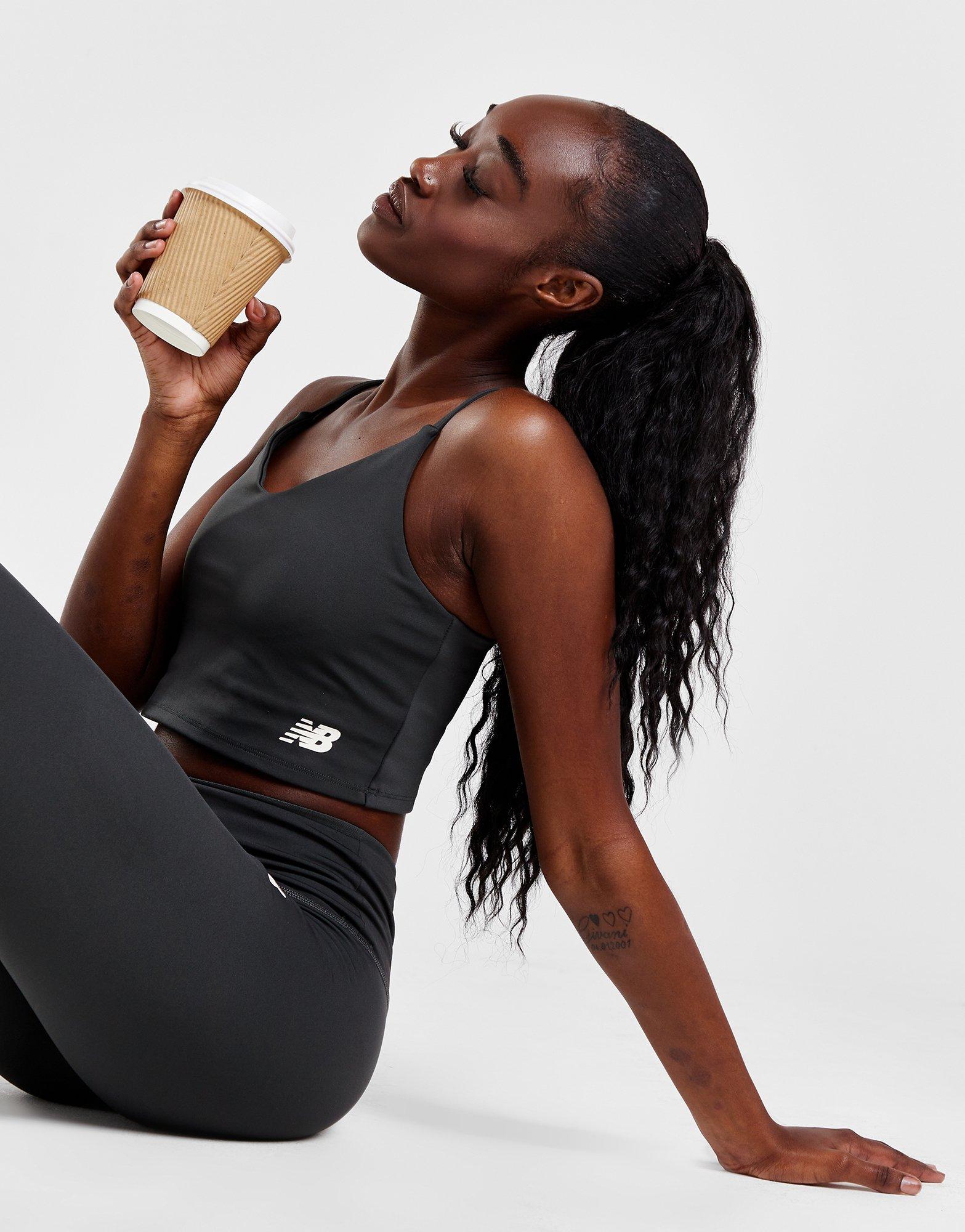 Get ready to achieve your goals with this women's Small Logo Sports Bralette from New Balance. In a Black colourway, this sports bra is cut from a smooth and sweat-wicking poly fabric for all-day comfort. It features adjustable shoulder straps for custom wear and has a cropped hem to give it a sporty vibe. Finished with New Balance branding to the hem. Machine washable. | Our model 5'7" and wears a size small.