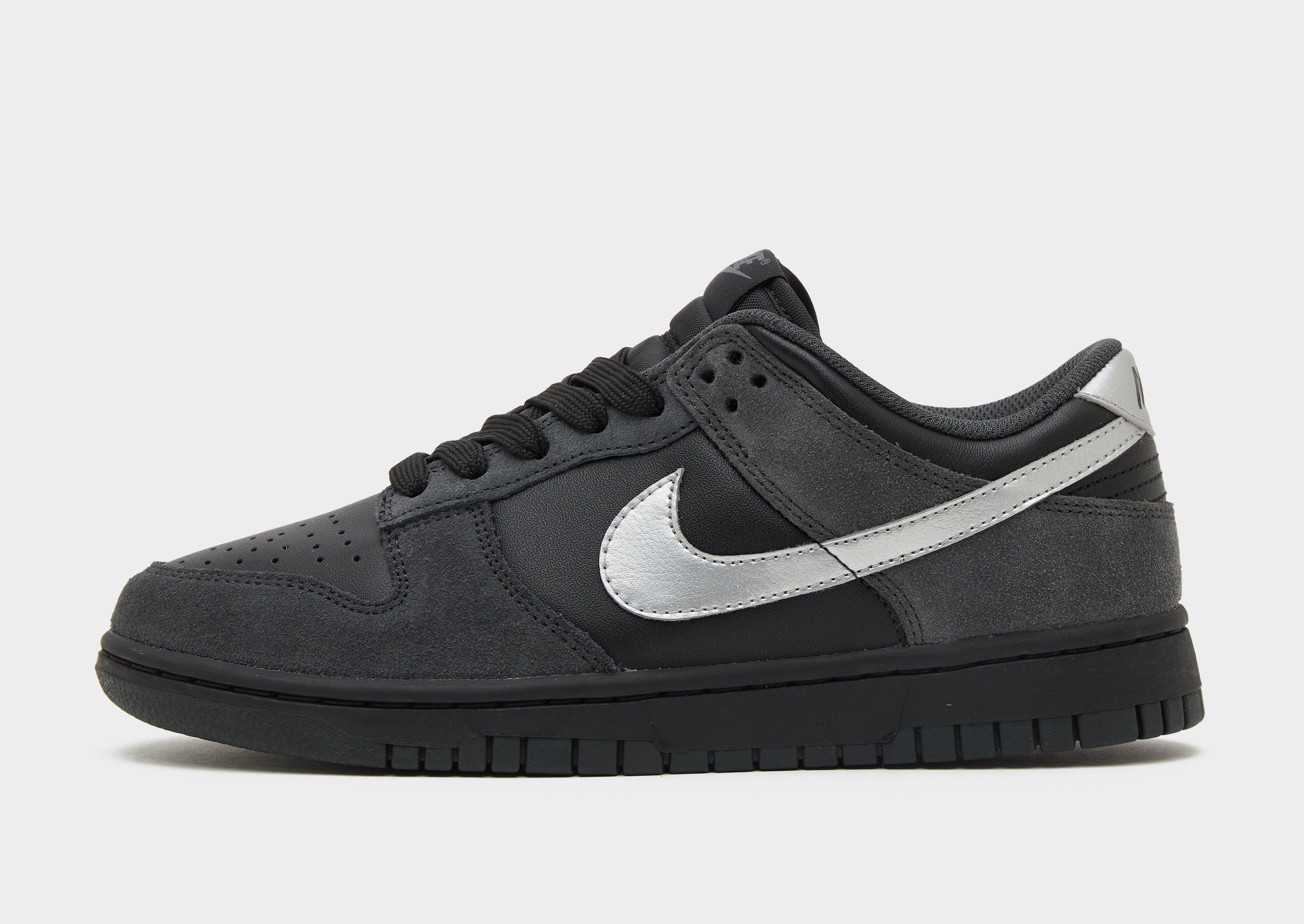 An '80s icon gets updated in these women's Dunk Low Next Nature Trainers from Nike. In a low-key Black and Anthracite colour with Metallic Silver accents, these JD-exclusive treads have a premium leather and suede upper. They have a tonal lace fastening to lock you in, and sit atop a streamlined midsole with light cushioning underfoot. With a rubber tread for traction, they're signed off with classic Swoosh branding.