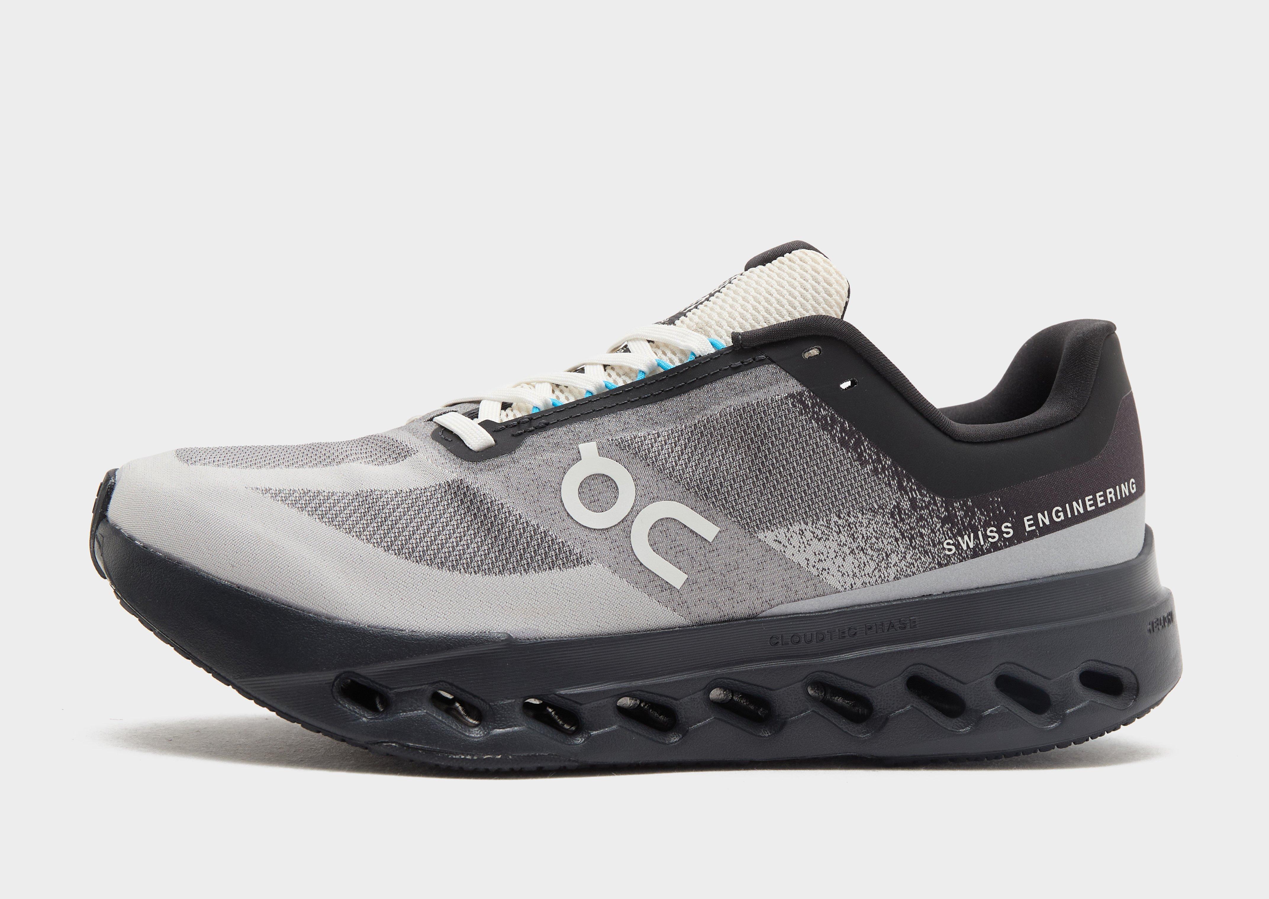 Get up and go. Only in On Running. These men's Cloudsurfer Next trainers take that race-day look and feel, and bring it to the streets. Up top, engineered mesh is super light and hugs your foot. Down below, a Helion superfoam brings the bounce and a CloudTec Phase midsole squashes for a soft and smooth stride from heel to toe. 6mm drop is signed off with grippy rubber pads and the upper is finished with the On Running logos.