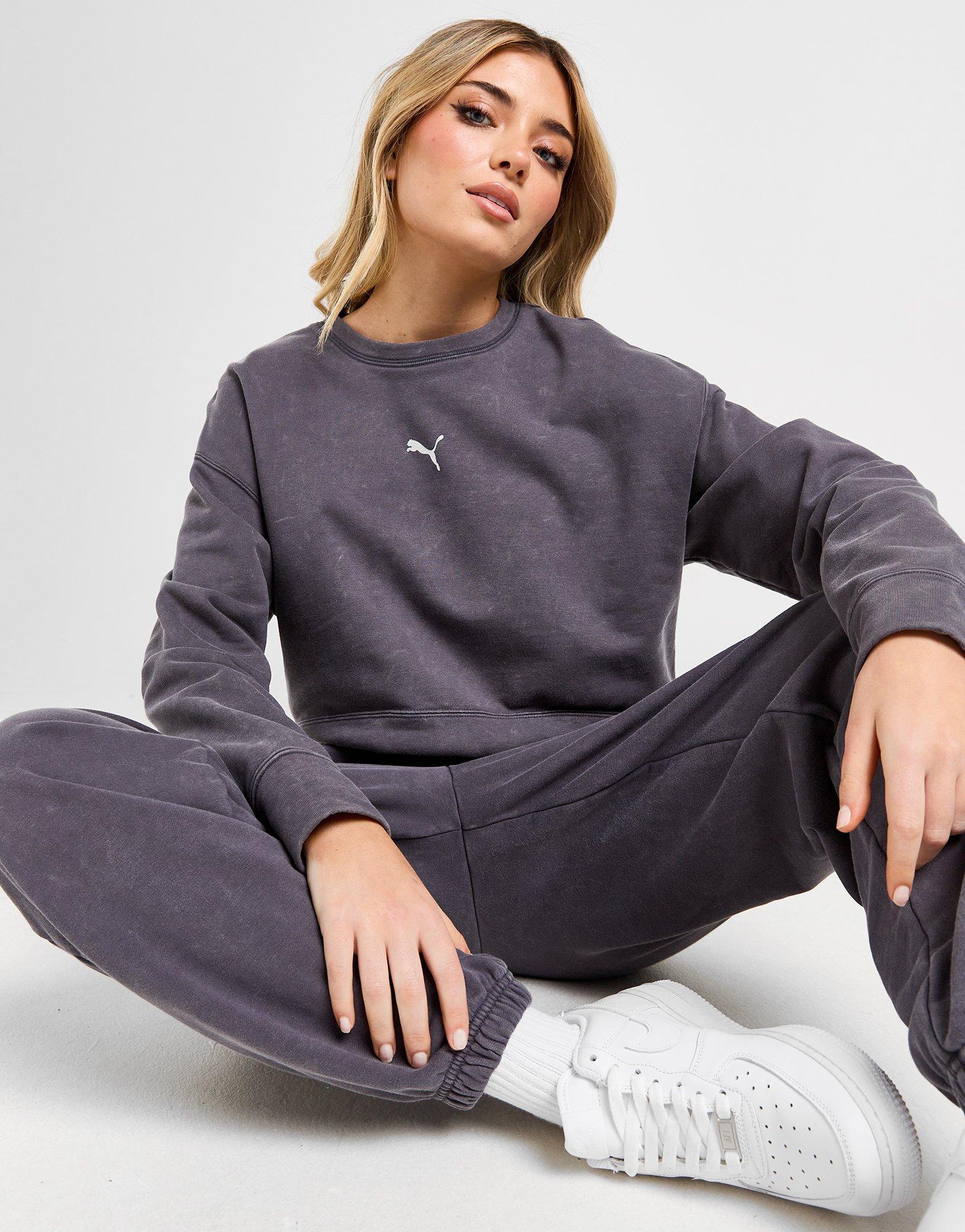 Refresh your layer game with this women's Washed Crop Crew Sweatshirt from PUMA. In a Galactic Grey colourway, this standard fit sweatshirt is cut from soft cotton fleece for total comfort. It features long sleeves with a crew neckline and has ribbed trims to hold the shape. It has a cropped hem for a laidback vibe and is finished up with classic PUMA branding to the chest. Machine washable | Our model is 5'6" and wears a size medium.