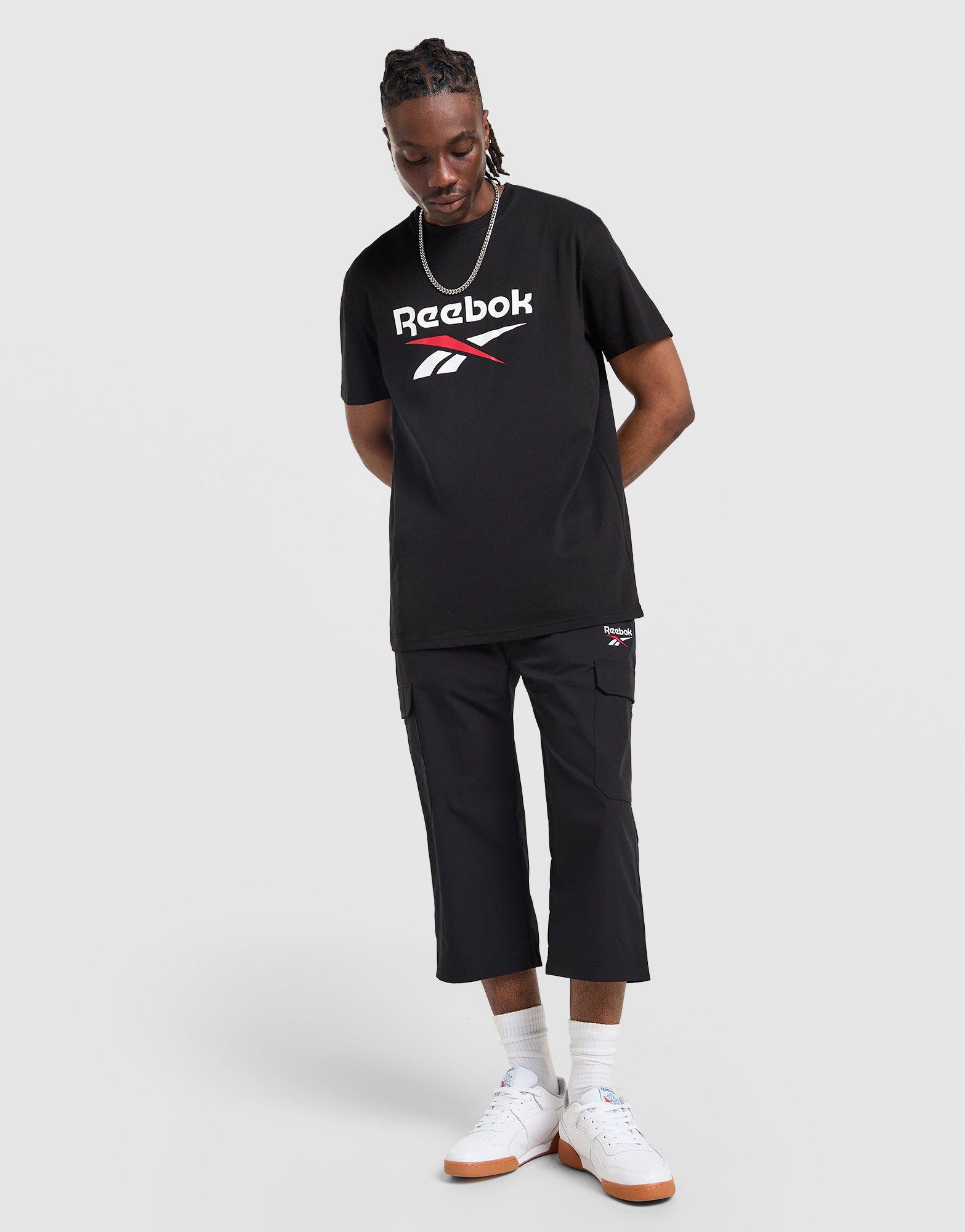 A fresh take on classic shorts. This time, Reebok have dropped the hem with these men's Core 3/4 Cargo Shorts. In a black colourway, these pants are made from lightweight woven fabric. They feature an elasticated waistband for custom comfort, as well as 3/4-length legs. With cargo pockets to each leg, these shorts are finished up with signature Reebok branding. Machine washable. | Our model is 6'1" and wears a size M.