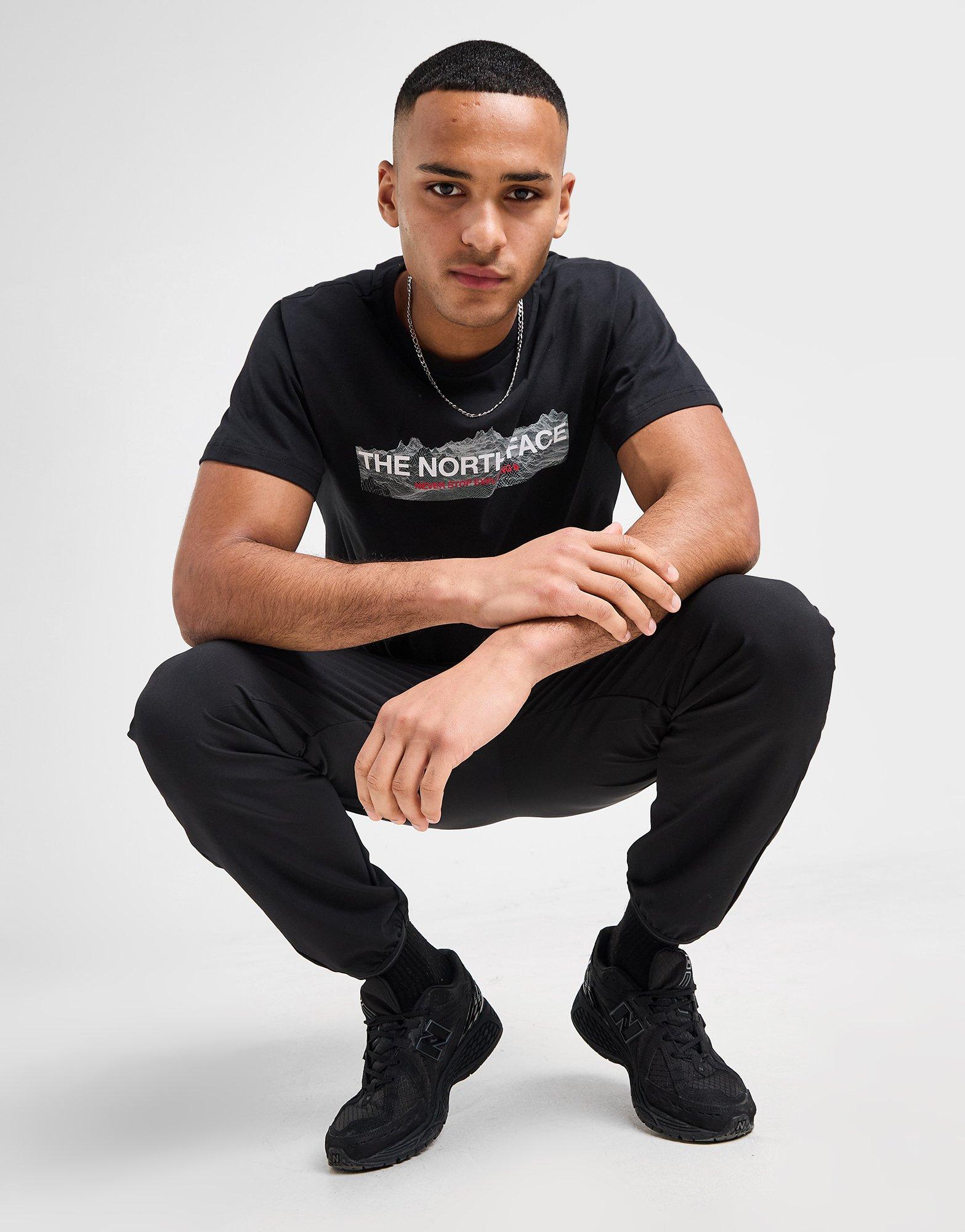 Bring an outdoor-inspired edge to your staple cuts with this men's Quantum Digital Mountain T-Shirt from The North Face. In a Black colourway, this standard-fit tee is made with soft, lightweight cotton for durable comfort. It features a ribbed crew neckline and short sleeves for a classic look, and is finished with a bold, contrasting The North Face branded graphic to the chest. Machine washable. | Our model is 6'1" with a 39" chest and wears a size M.