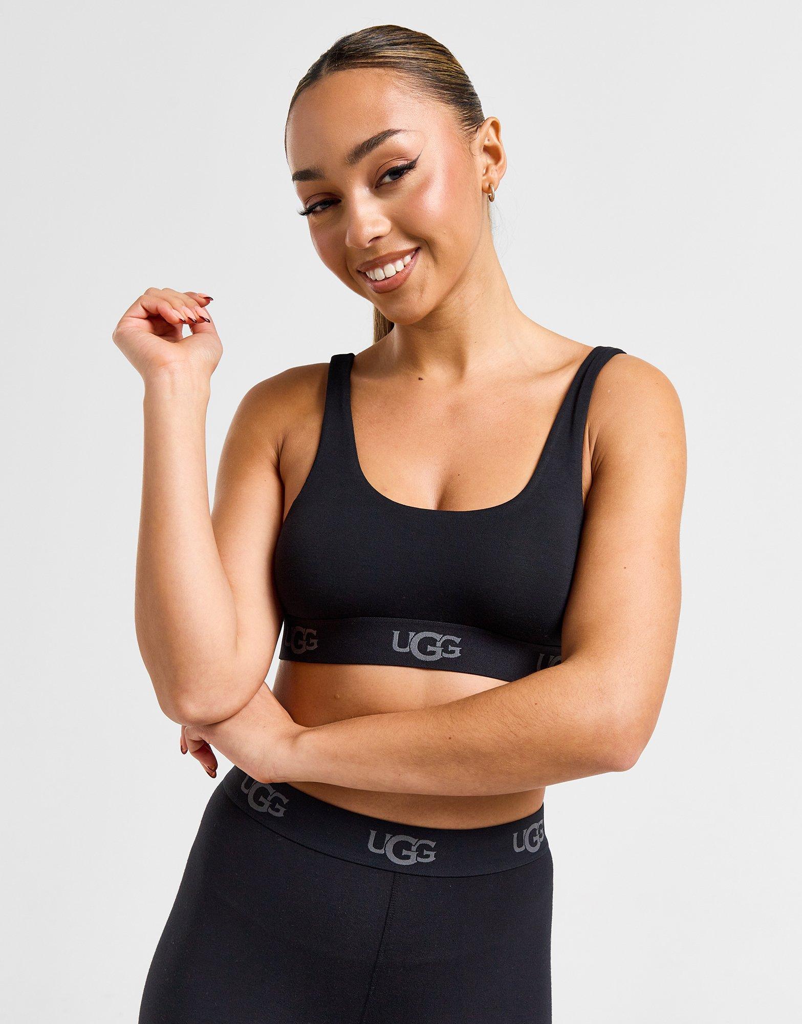 Bring sleek style to your staples with this women's Gwendolynn Bralette from UGG. Landing in Black, this scoop neck bra is made from a double layered viscose construction, with added stretch for a super-smooth feel that acts as a second skin. It features wide straps for support and is finished with repeated UGG logos on the elasticated underband. Machine washable. | Our model is 5'8" and wears a size small.