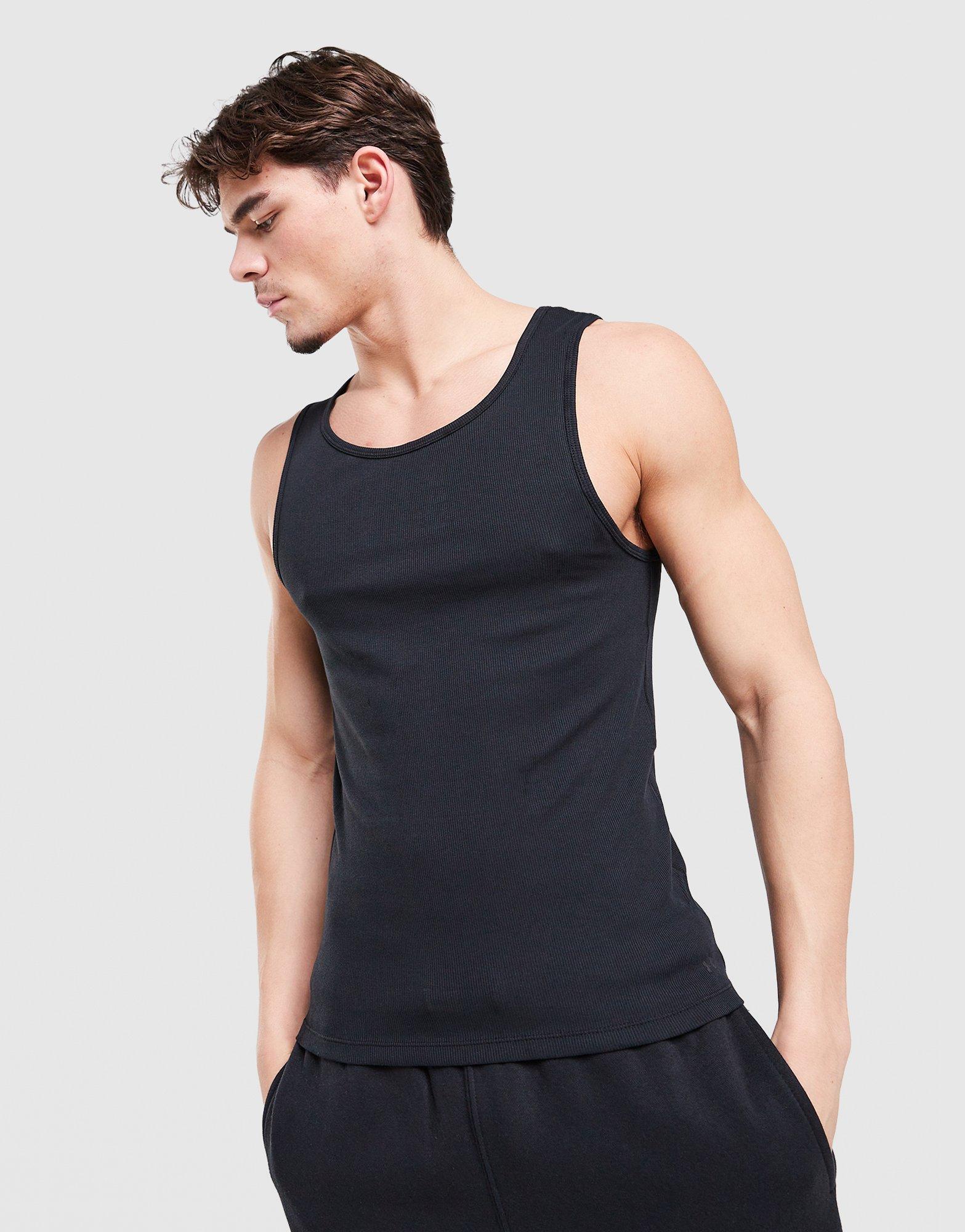 Under Armour's got your everyday essentials covered with this men's 2-Pack Ribbed Tank Top. In back, they're black, they're cut from soft, ribbed cotton fabric. They've got a scoop neckline and a sleeveless design with Under Armour branding to finish things up. Machine washable. | Our model is 6'2" with a 37" chest and wears a size M.