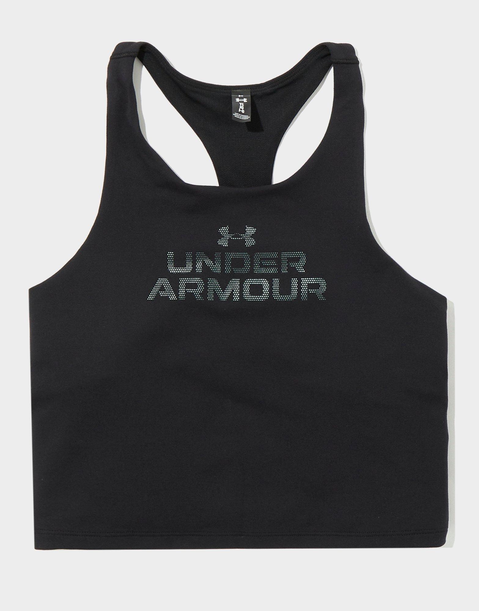 Bring the energy in this junior girls' Motion Tank Top from Under Armour. Smooth and stretchy, it wicks away sweat to keep things dry. It's got a racerback design and a built-in bra for support, with Under Armour branding to finish things up. Machine washable.