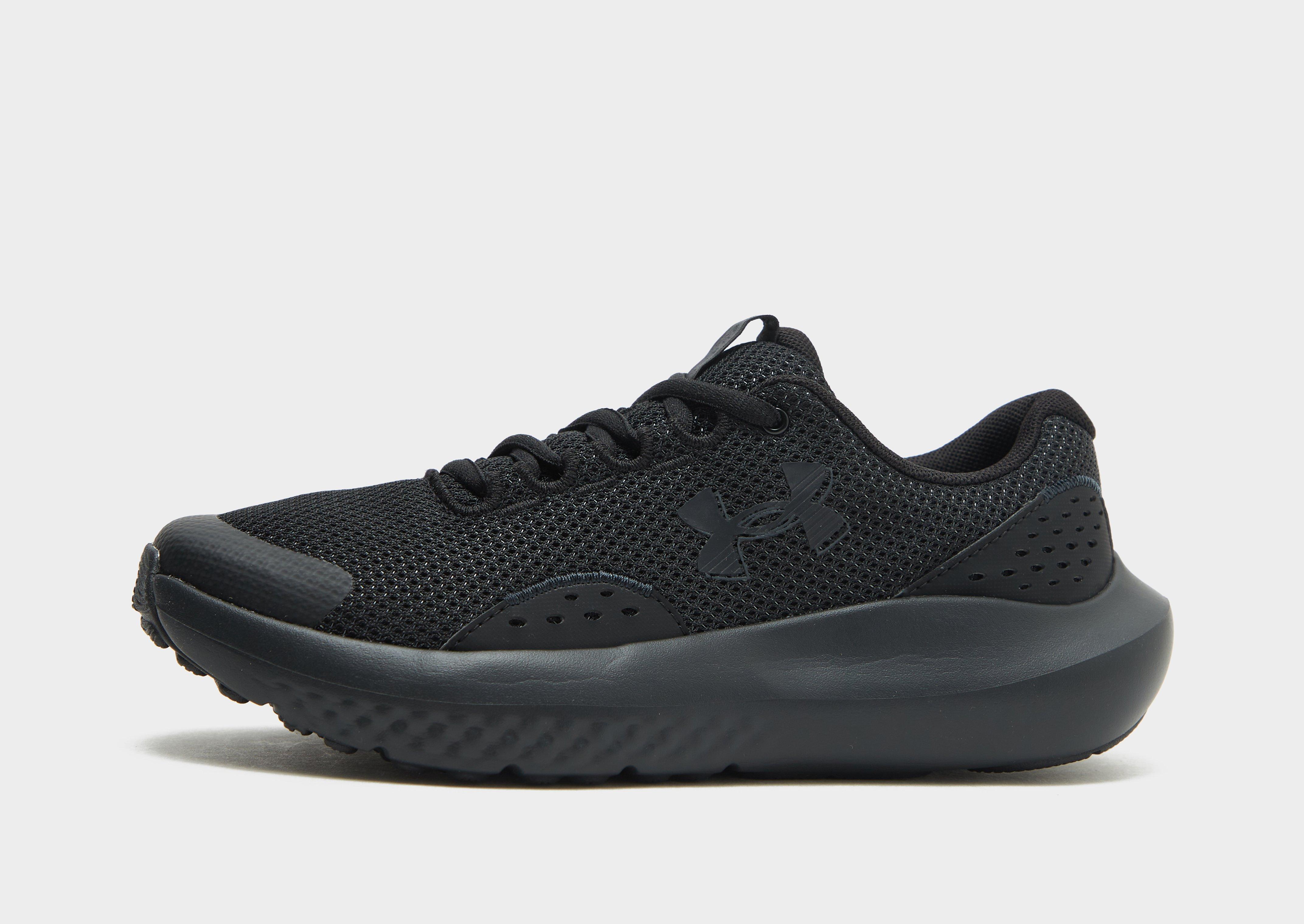 Lace up and go in these juniors' Surge 4 trainers from Under Armour. In a Black colourway, these runners have a breathable mesh upper with synthetic overlays for durable wear. They feature a tonal lace fastening with soft padding around the ankle collar for a locked-in fit, and a full-length EVA sockliner for plush comfort. With enhanced cushioning underfoot for a smooth, responsive ride, they have a tough rubber outsole for grippy traction. Finished with signature Under Armour branding throughout.