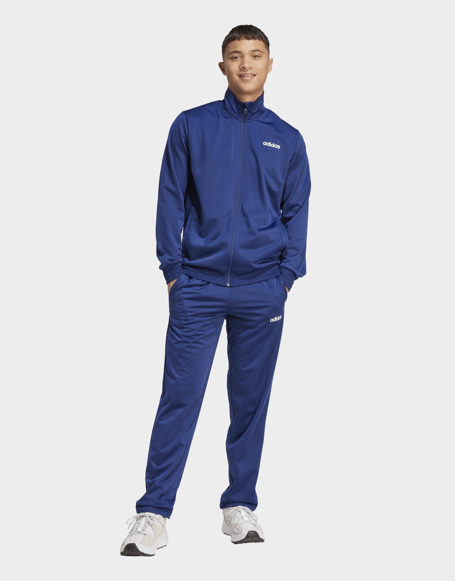 This adidas track suit is all about easy style. Slip into the soft and smooth tricot build and you're ready to go. A high collar offers added coverage and the drawcord-adjustable elastic waist ensure the perfect fit. Pockets on the jacket and pants stash your ID and keys.