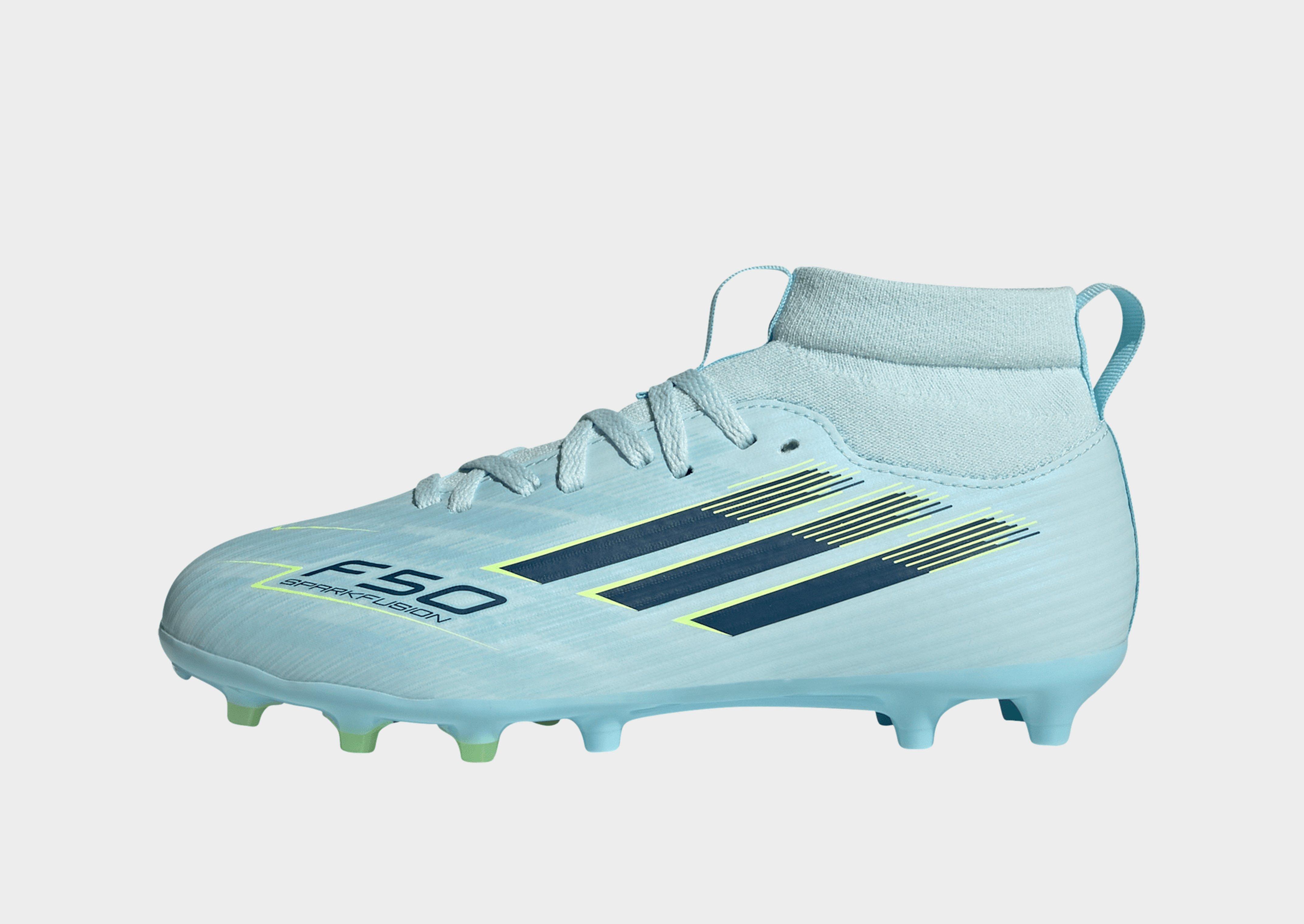 Step onto the pitch with confidence in the F50 Sparkfusion League Mid Cut Football Boots for Firm Ground/Artificial Ground. Designed to change the game, these boots are crafted for young players who dream big. With a focus on comfort and performance, the extended knit collar is crafted to mould to the foot, offering a snug fit that feels like a second skin. The Sprintplate Fusion outsole is engineered to provide traction and support on both natural and artificial grass. This means your child can pivot and sprint with ease, thanks to the semi-conical studs and 360-degree rotation zone. With adidas branding and the iconic F50 logo, the football boots carry a legacy of excellence too.These boots are more than just footwear. They're a gateway to endless possibilities on the field. Let your child experience the thrill of the game with boots that are designed to inspire and perform.