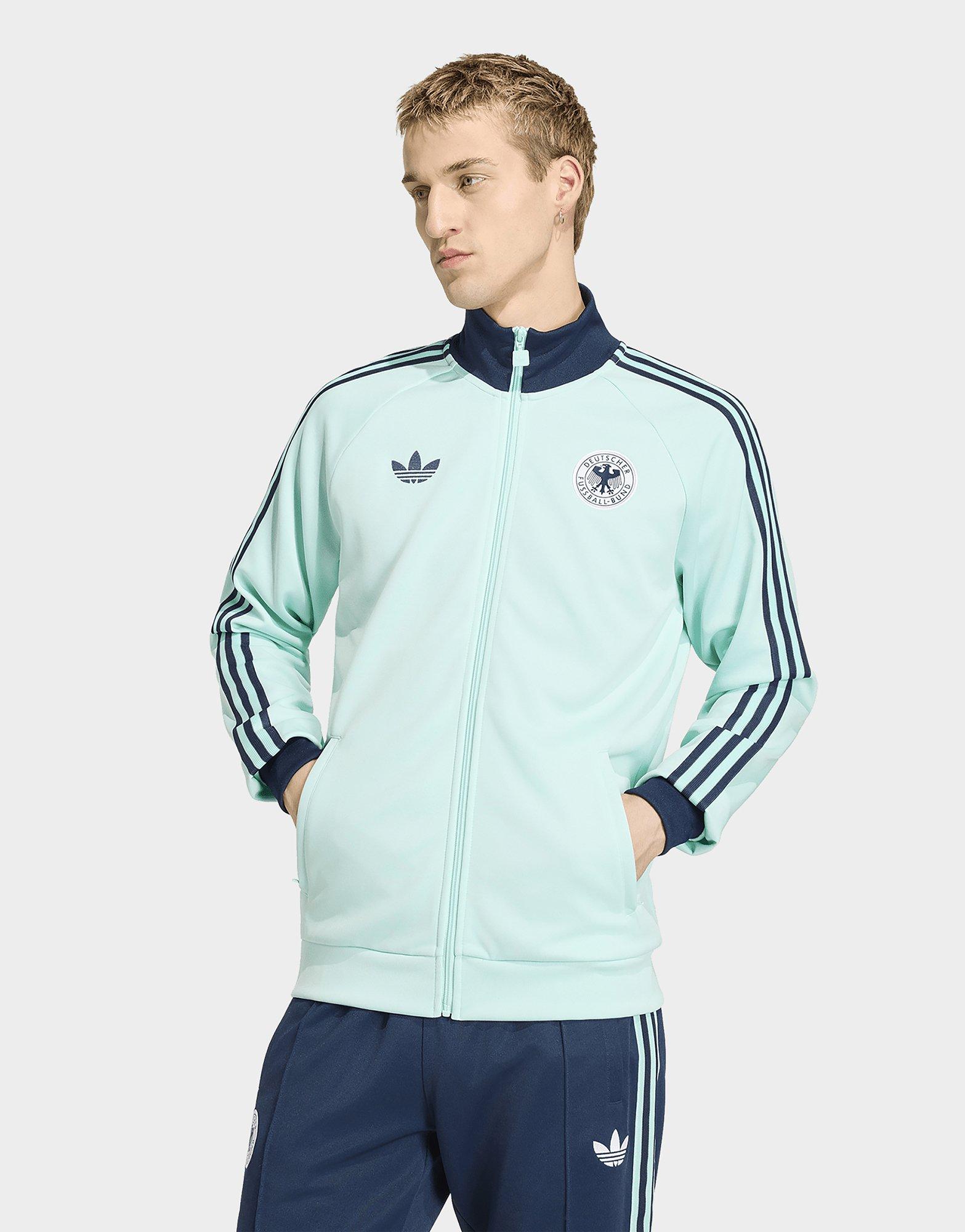 The adidas Germany Originals Track Top celebrates football heritage with a look that blends classic design and modern comfort for a look that transitions from the stands to the street with ease.Inspired by the team’s famous away jersey, it channels football culture into a versatile piece made for daily wear. Crafted from interlock fabric, it delivers a smooth, durable feel with a regular fit for easy movement and all-day comfort.Finished with Trefoil branding for an unmistakable adidas identity, it carries the spirit of the game beyond the pitch — timeless, confident, and authentically football.