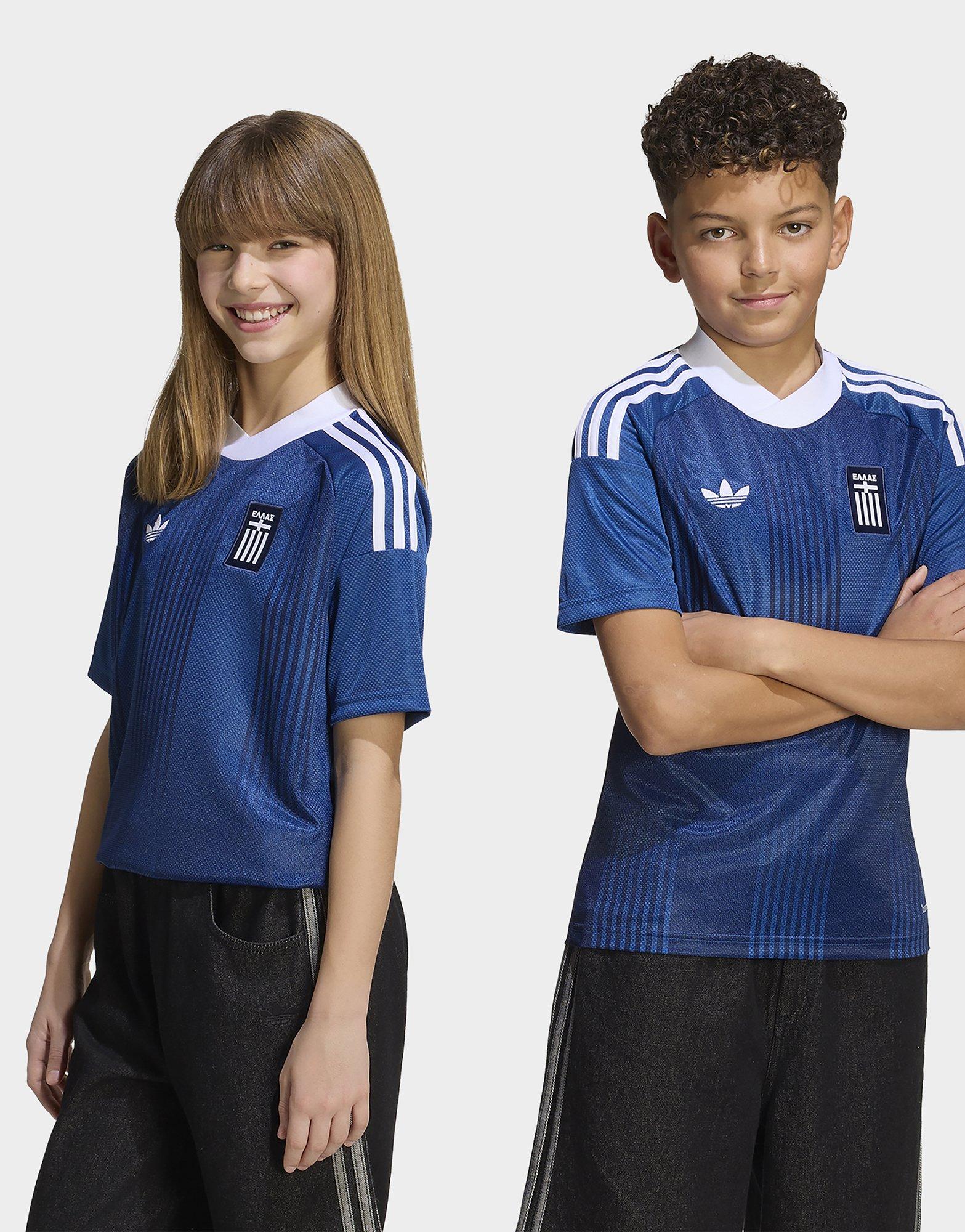 Celebrate football heritage with the Greece 26 Away Jersey, inspired by decades of passion and pride. This jersey pays homage to the federation’s 100th anniversary, featuring colours reminiscent of classic kits from the 1980s. Let them express their passion and pride every day, whether they’re playing with friends or cheering from the stands.Climacool technology provides moisture management for cool, dry performance, and the regular fit offers distraction-free movement. The higher crew neckline and short sleeves add a touch of classic style, and the knit fabric brings a soft touch against the skin for comfort on active or relaxed days. The bold design lets them make a standout statement of their passion and pride on the pitch and beyond.Bring football heritage and the spirit of FIFA World Cup 26™ to every adventure with this innovative jersey from adidas.