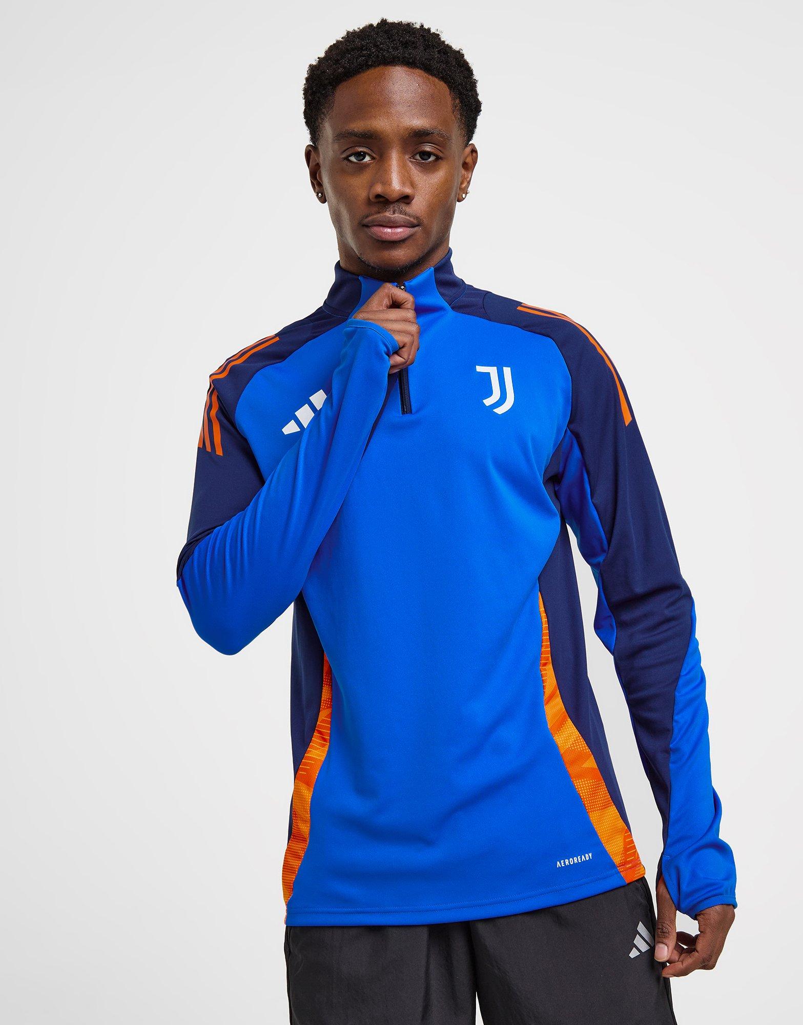 Perform like the pros with this men's Juventus Training Top from adidas. In a Blue colourway, this slim fit top is cut from recycled polyester with AEROREADY sweat-wicking tech to keep things cool as you practice your skills. It features a quarter zip fastening and a ribbed stand-up collar to amp up the coverage, with thumbholes on the cuffs to keep you feelin' locked in. With the signature 3-Stripes to the shoulders, it's signed off with the Performance logo and Juventus crest to the chest. Machine washable. | Our model is 5'11" with a 38" chest and wears a size M. | JE4310
