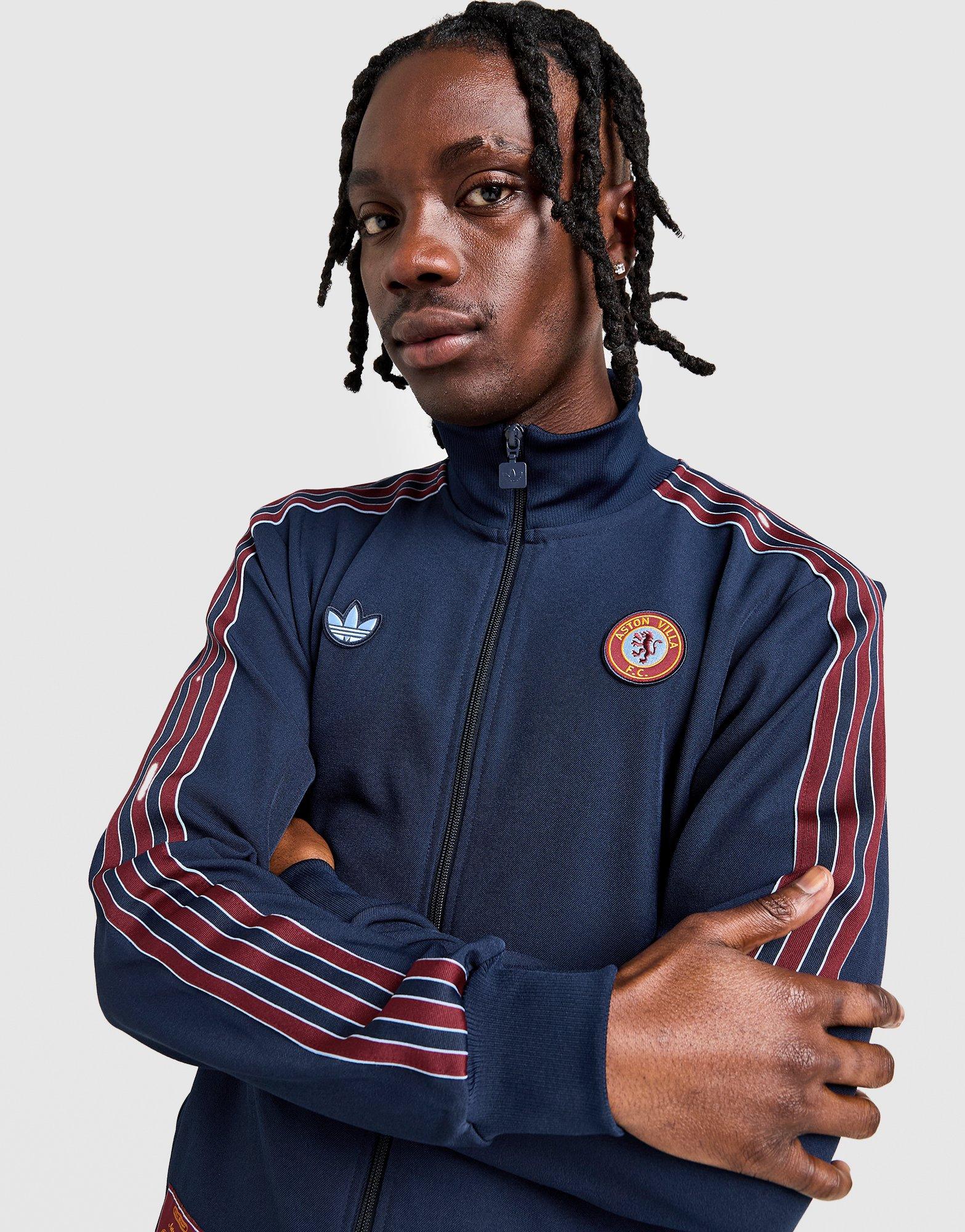 Throw it back to old-school matchdays at Villa Park. This men's Aston Villa FC Icons Track Top from adidas Originals is inspired by the '80s. Claret 3-Stripes down the sleeves and a blue Trefoil on the chest nods to the club's colours, while vintage Villans branding sits on the front. Made from recycled knit, this full zip top is finished with ribbed trims, zip pockets and a stand-up collar. Machine washable. | JN0220