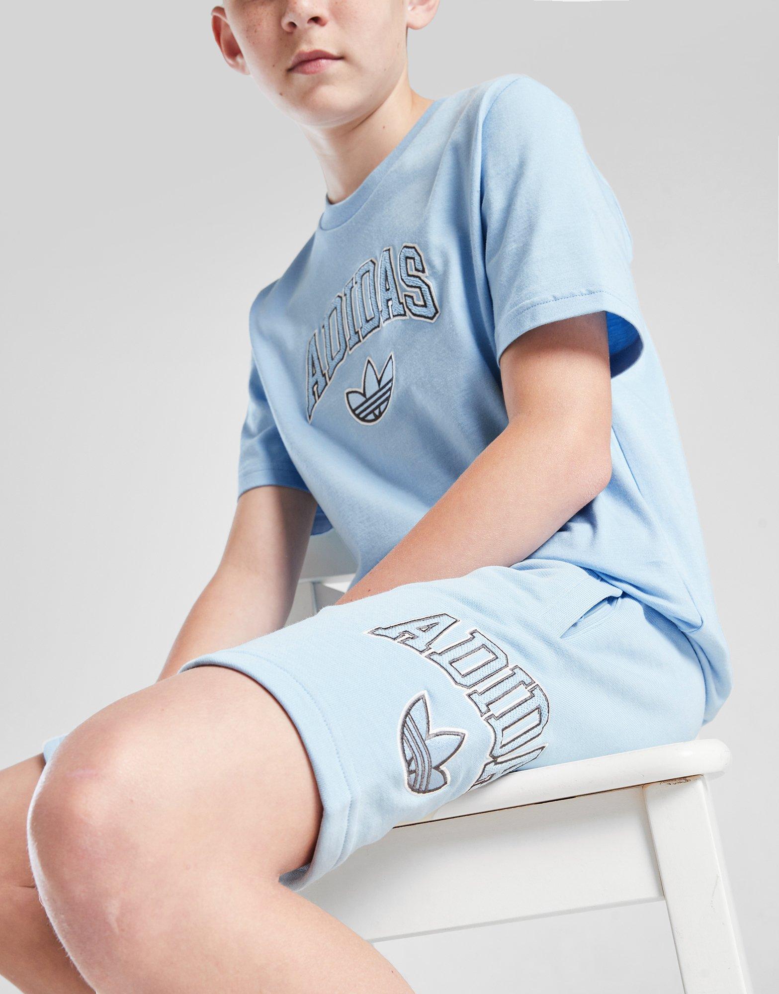 Freshen up your off-duty fits with these juniors' Collegiate Shorts from adidas Originals. In a Clear Sky colourway, these JD-exclusive shorts are cut from a soft cotton and recycled polyester blended fabric for total comfort. They feature an elasticated waistband with a drawcord to adjust the fit, and side pockets to stash away your essentials. Finished up with varsity-style adidas Originals branding above the hem. Machine washable. | JX6854