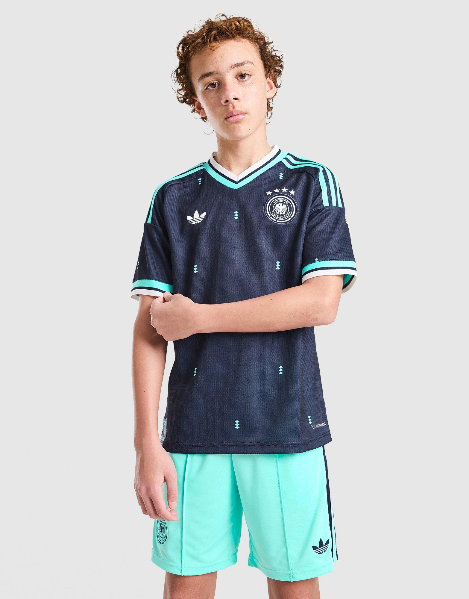 Get behind your nation. This juniors' Germany 2026 Away Shirt from adidas Originals is inspired by iconic moments on the pitch. Light and breathable, built-in CLIMACOOL tech wicks away sweat. It lands in Collegiate Navy with the iconic Trefoil and 3-Stripes. The team crest sits at the chest. Machine washable | JZ4569