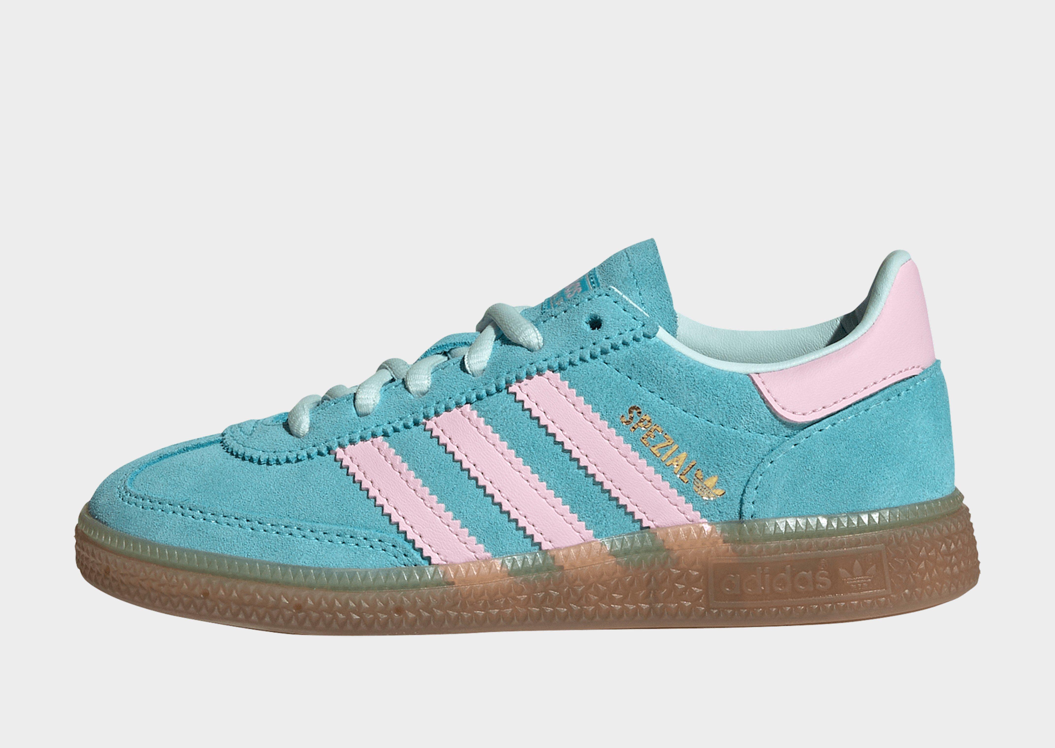From blacktop to sidewalk, kids need shoes that can keep up. The adidas Handball Spezial is built for kids on the move. Scaled down for growing feet, these retro-inspired shoes bring big style in a small package. Their suede upper and gum rubber sole provide toughness from top to bottom, with grippy traction for all their running and playing. Serrated 3-Stripes, a double-stitched T-toe and classic Spezial branding finish off the look.