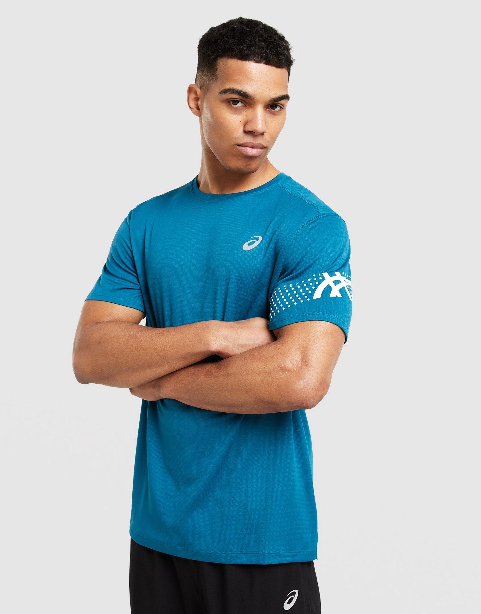 Pick up a JD-exclusive look with this men's Icon T-Shirt from ASICS. Made for training, this standard-fit tee uses soft, lightweight poly fabric for total comfort. It comes in a dark teal colourwat and features a crew neckline, short sleeves and dropped back hem for extra coverage when you move. With flat seams to reduce chafing,k this fitness top is finished up with reflective details and signature ASICS branding. Machine washable. | Our model is 6'0" with a 40" chest and wears a size M._