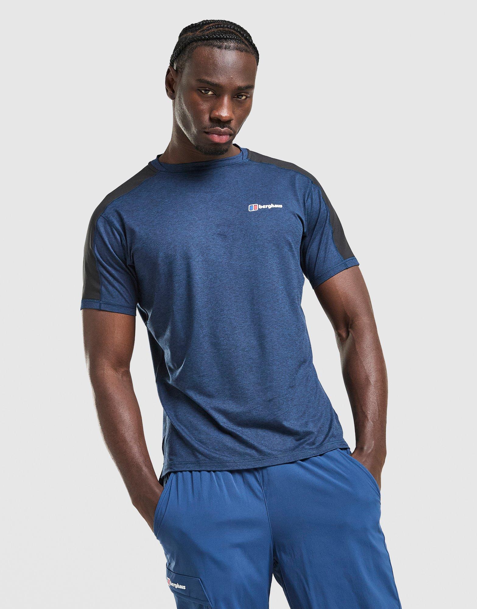 Get out and get moving. This men's Farndale T-Shirt from Berghaus is cut from light and breathable fabric. It features short sleeves with a ribbed crew neckline and flat-locked seams for all-day comfort. It lands in navy with signature Berghaus branding. Machine washable | Our model is 6'1" with a 36" chest and wears a size M.