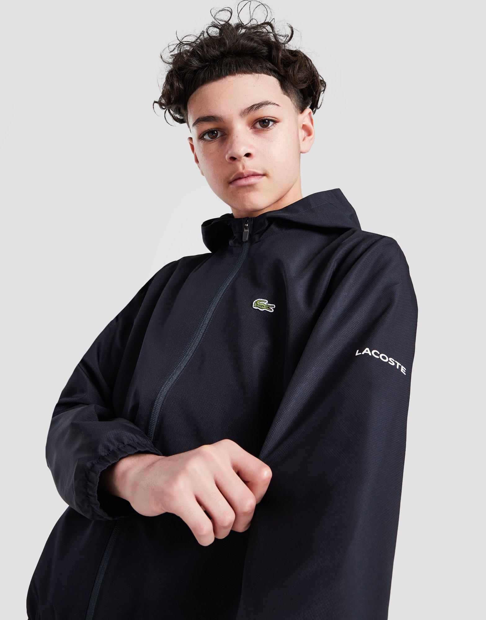 Step out in this juniors' Performance Jacket from Lacoste. In a Navy colourway, this regular-fit jacket is made with smooth, durable woven polyester for lasting wear. It features a full-zip fastening with a fixed hood to amp up the coverage, and elasticated trims to secure the fit. With zipped side pockets to stash your essentials, it's finished with signature Lacoste branding throughout. Machine washable.