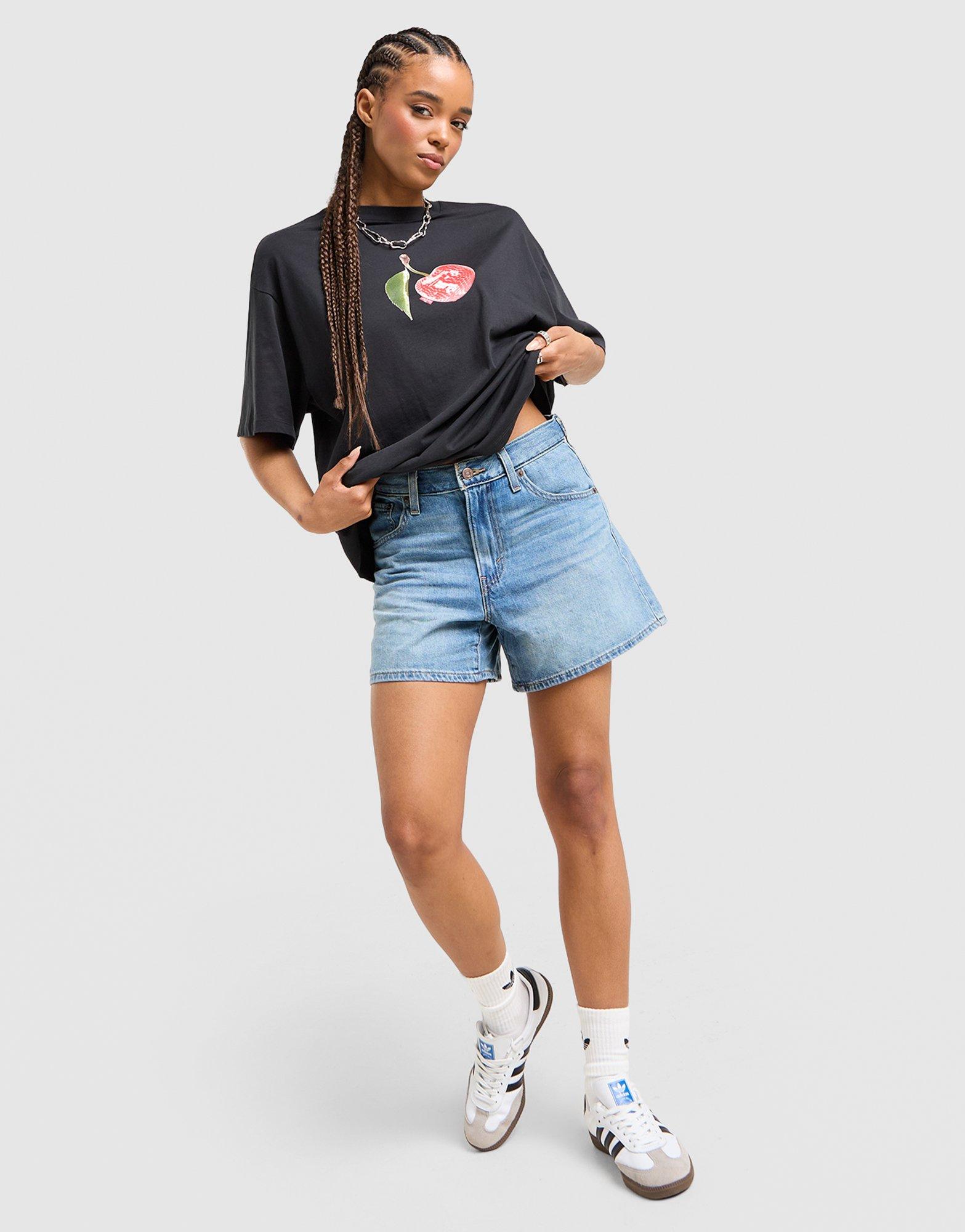 A summer staple from Levi's. These women's Cinch Shorts are cut from soft cotton denim with a mid-length fit. Landing baggy through the hip and thigh, they've got a high-rise waist with a button closure, a zip fly, and belt loops. They have a classic five-pocket styling for your stuff, with a Levi's logo patch on the rear to finish up. Machine washable. | Our model is 5'7" and wears a size 26.