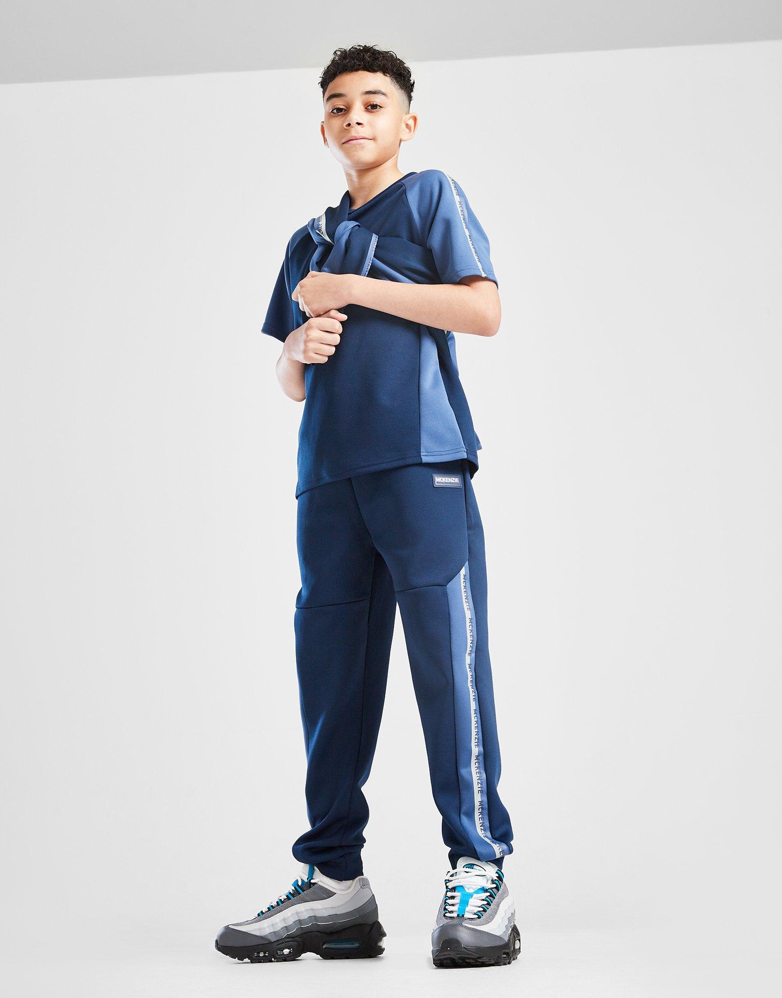 Ready to hit the streets? Say less. These juniors' Cruiser Poly Track Pamts from McKenzie are cut from light, breathable fabric. Exclusive to JD, they have an elasticated waist for a secured fit. Cuffed ankles and tapered legs to hold the shape. And side pockets for storage. With branded taping down the sides, they're signed off with a McKenzie logo to the thigh. Machine washable.