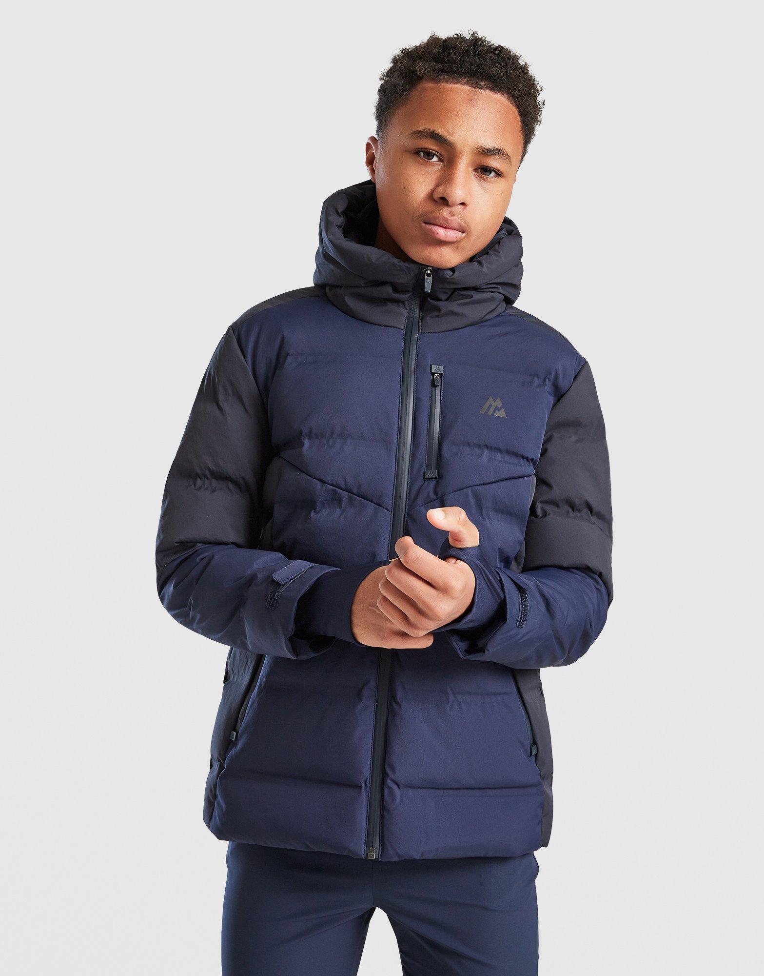 Lock in the heat. This juniors' Descent Jacket is cut from smooth, water-resistant fabric with padded fill to keep you toasty. It has a full-zip fastening and hood for coverage. Hook-and-loop cuffs let you adjust the fit. Zip-up side pockets secure your essentials. Landing in Space Blue and Midnight Blue, it's finished with signature branding. Machine washable.