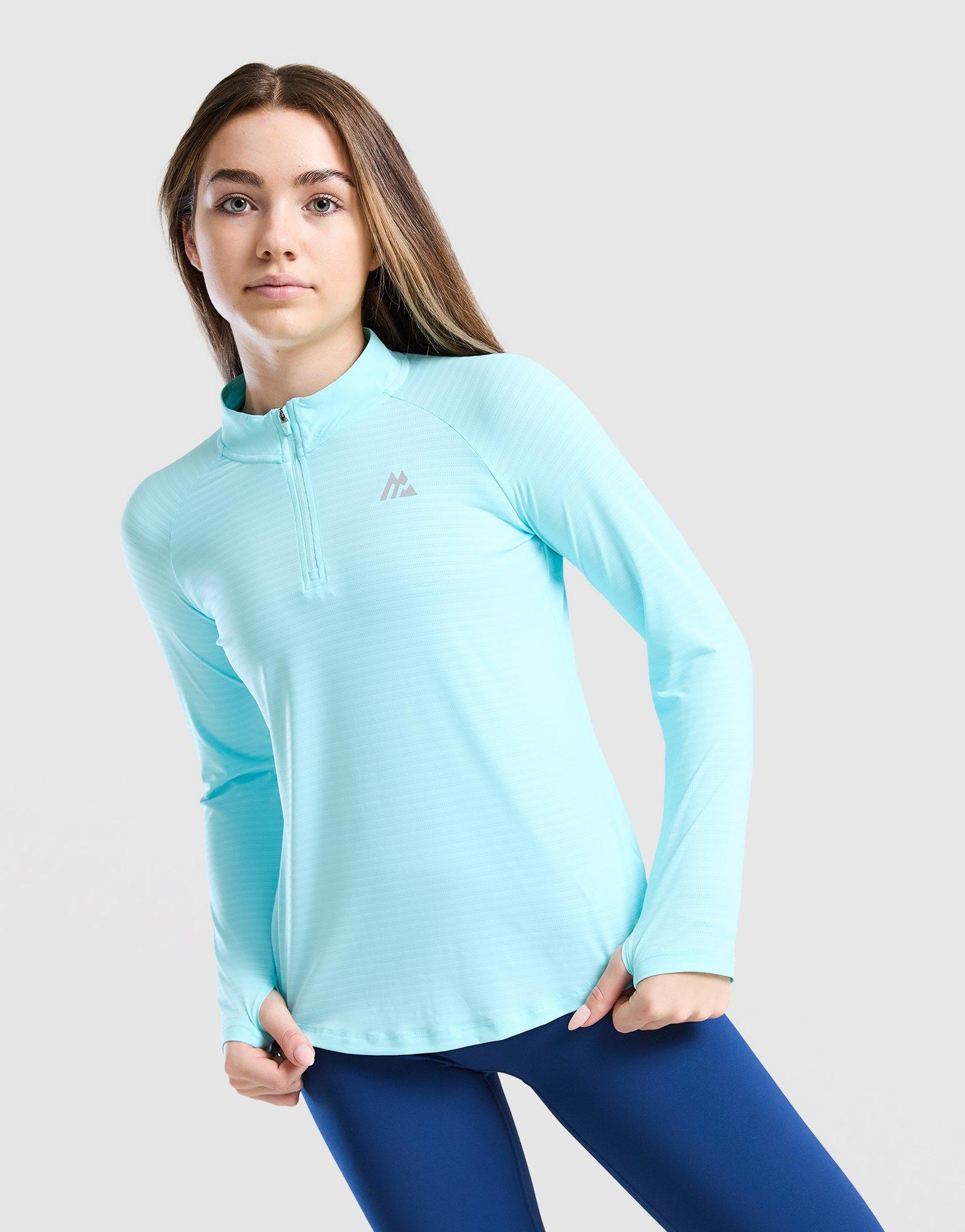 Streets to trails. Montirex's got you with this junior girls' Energy 1/2 Zip Top. Light and airy, it's got a quarter-zip fastening to adjust the airflow. Thumbholes to lock the sleeve in place. And reflective details to keep you seen. Montirex branding finishes things up. Machine washable.