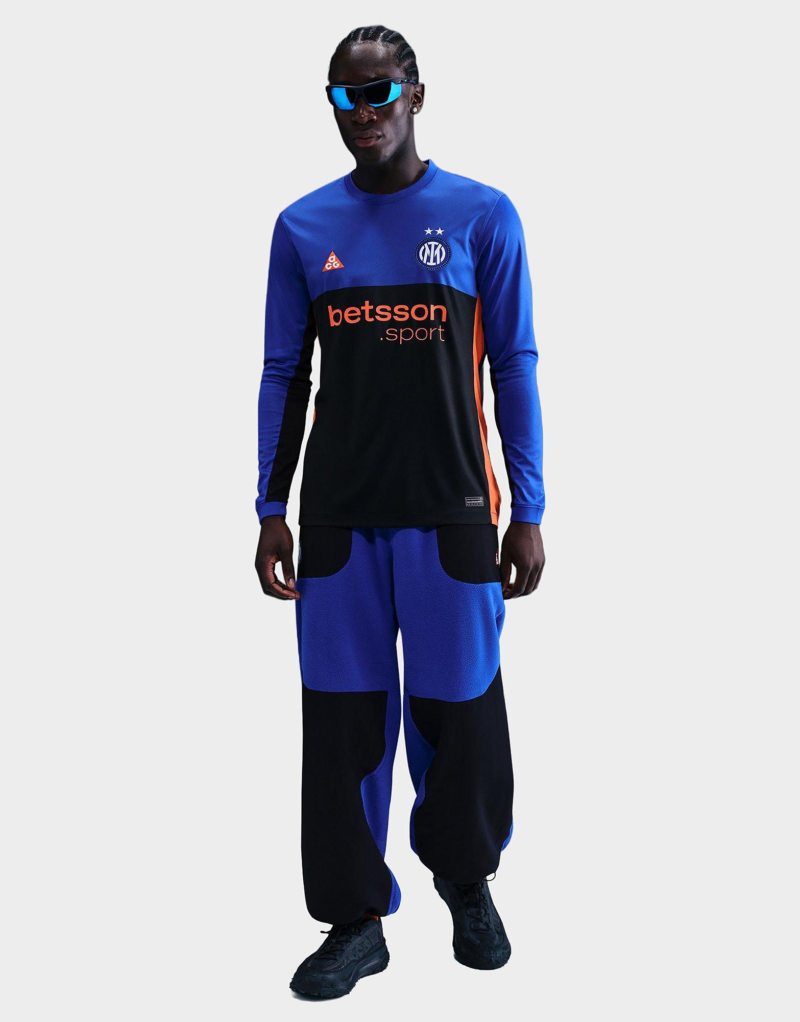 From the stands to the pitch. Rep your team. This men's Inter Milan 2025/26 Long Sleeve Fourth Shirt from Nike ACG is cut from light and breathable fabric. It has Dri-FIT tech to remove sweat. With mesh panels for ventilation. Made to celebrate the 2026 Milano Olympics, it lands in Hyper Blue, black and Safety Orange and is finished with the signature ACG logo and iconic club crest. Machine washable.