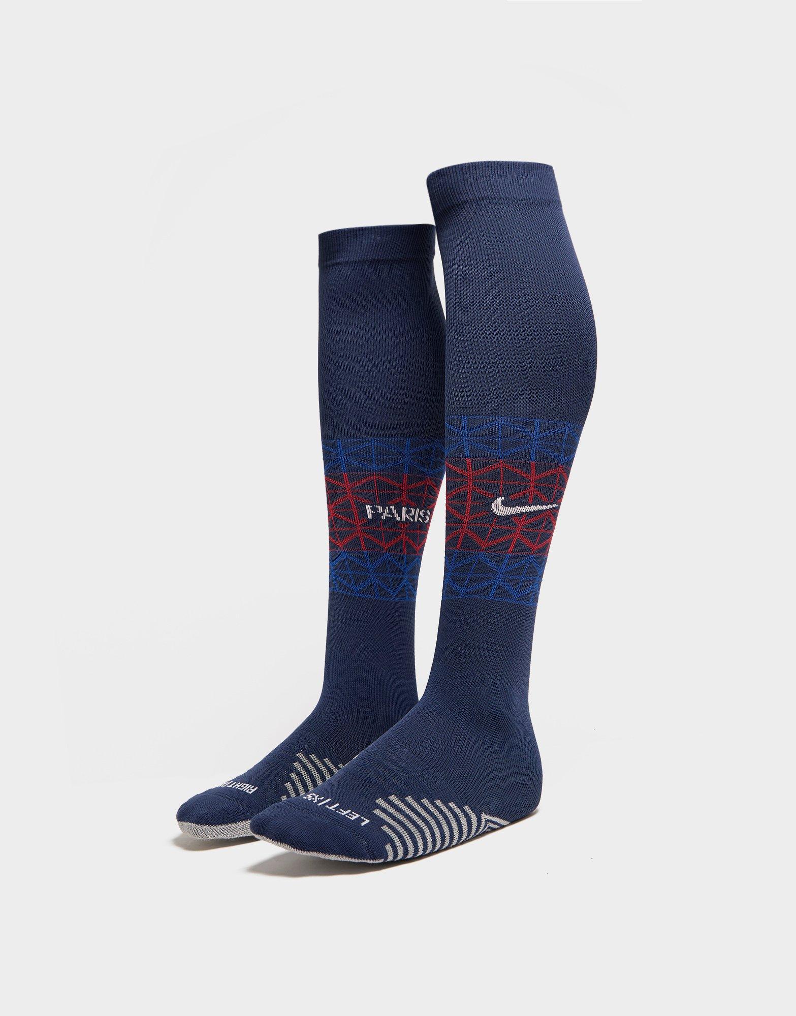 Complete the kit with these juniors' Paris Saint Germain 2025/26 Home Socks from Nike. In a Midnight Navy colourway, these knee-length socks are made from a soft, stretchy fabric for lasting comfort. They feature an Eiffel Tower-inspired print in University Red, and Dri-FIT sweat-wicking tech to keep things cool when the game heats up. Finished up with the Swoosh logo and 'Paris' wordmark branding. Machine washable.