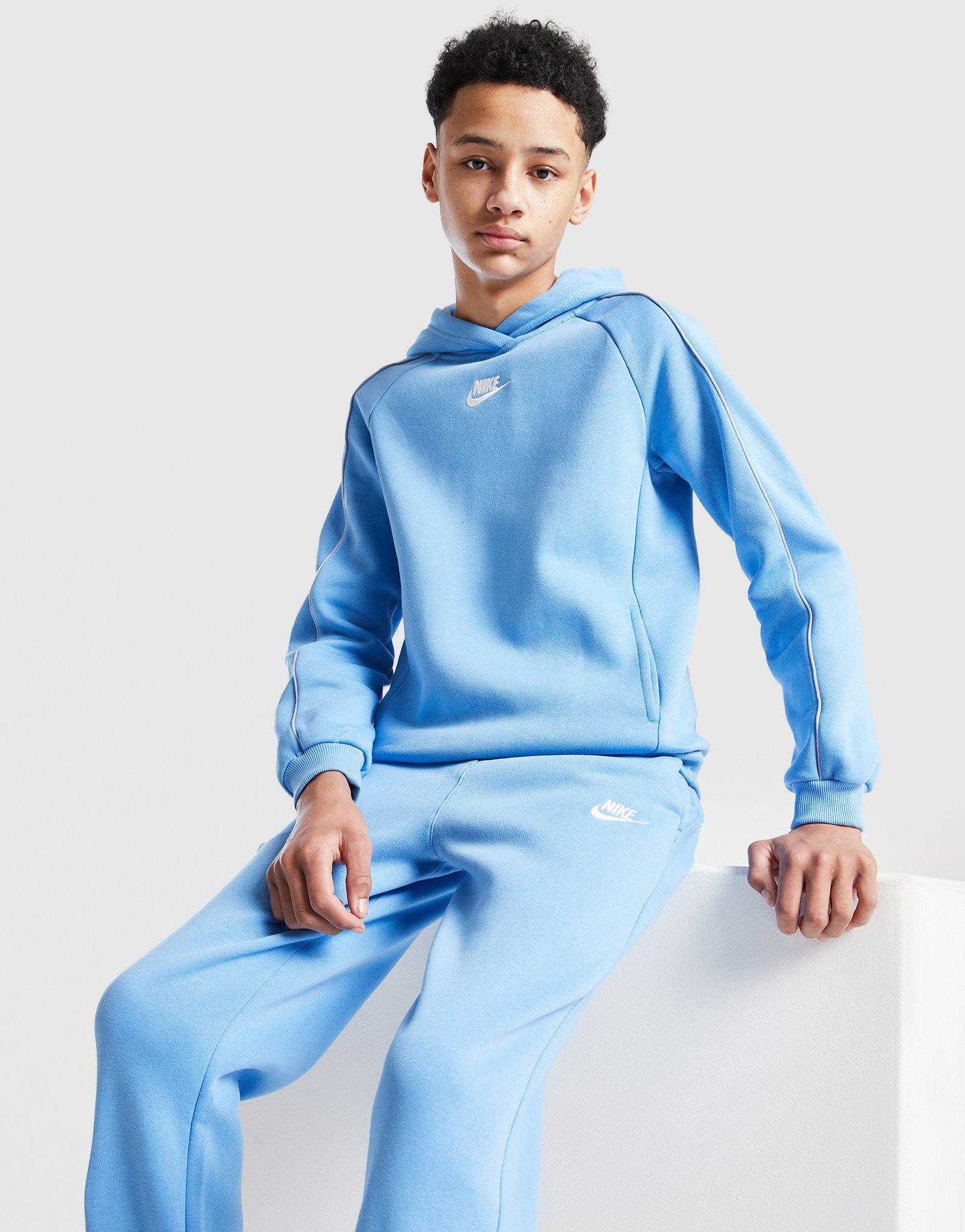 Chill vibes from the Swoosh. This juniors' Sportswear Club Tracksuit from Nike is cut from lightweight fleece that's smooth on the outside and brushed soft inside. It features a pullover hood and ribbed trims on the hoodie. And matching joggers with an elasticated waist, cuffed ankles and side pockets. In University Blue, it's finishes with signature Nike branding. Machine washable.