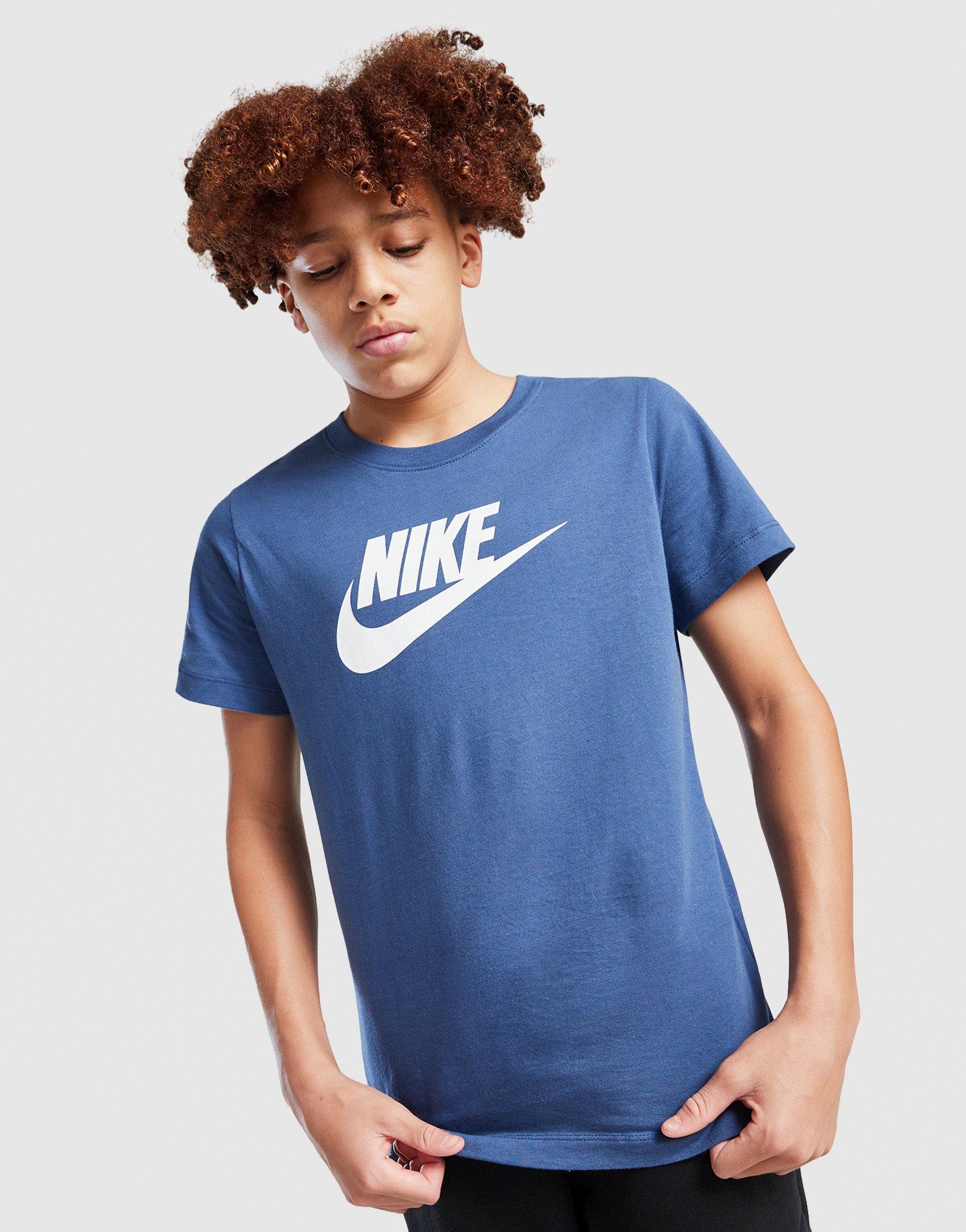 Stock on Swoosh staples with this juniors' Nike Sportswear T-Shirt. Dropping in Mystic Navy, this classic tee has a crew neckline and is made from soft, breathable cotton for all day comfort. Finished with an oversized Nike Futura logo on the chest. Machine washable.