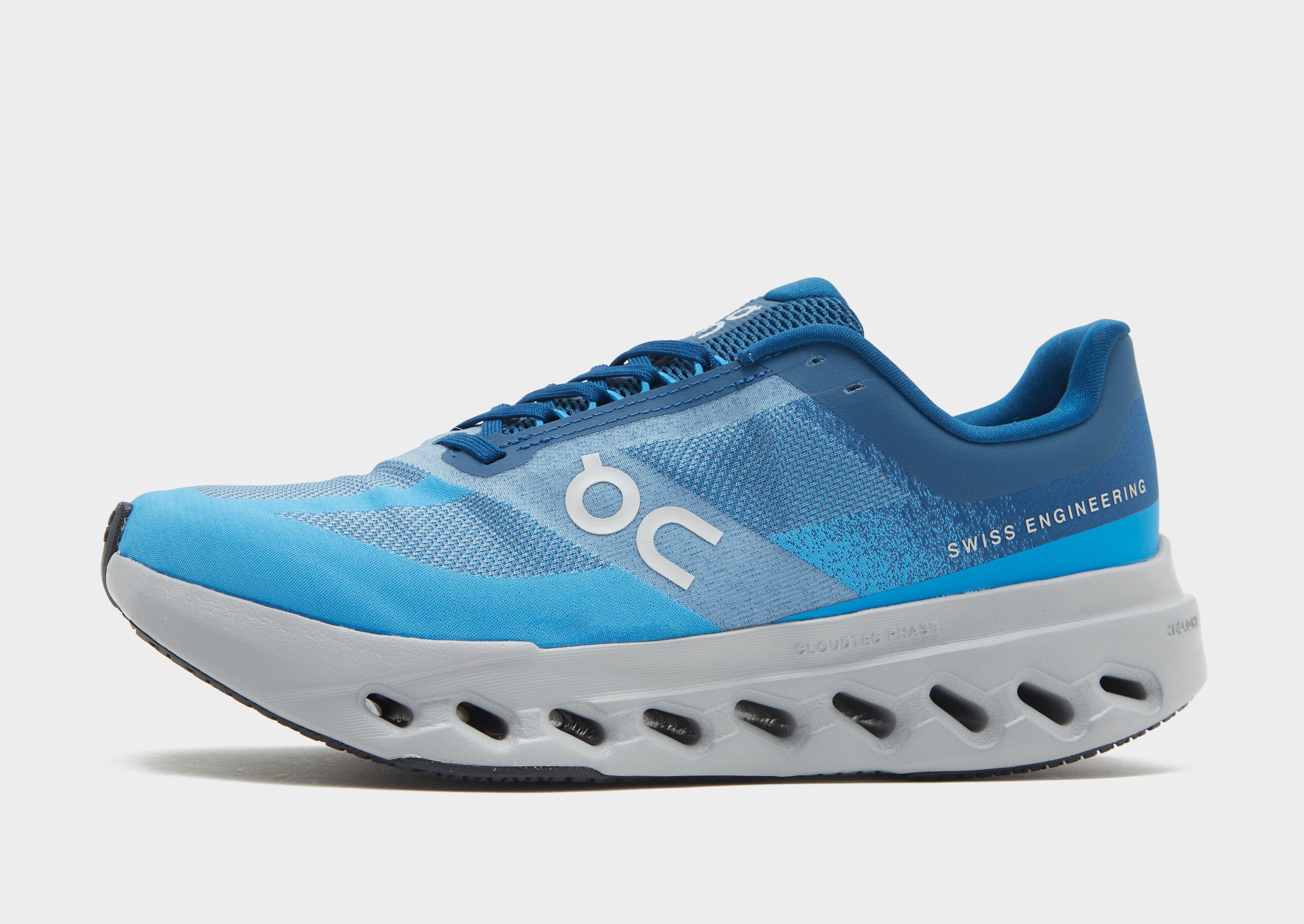 Push your pace in these men's Cloudsurfer Next trainers from On Running. In a Blue colourway with Silver and Grey accents, these JD-exclusive runners have an airy mesh upper with no-sew overlays for cool comfort. They feature a lace fastening to lock you in, with a padded ankle collar for extra support. Underfoot, they have a Helion midsole with CloudTec cushioning for a responsive ride, while the tough rubber outsole offers total traction as you go the distance. Finished up with signature On Running branding throughout.