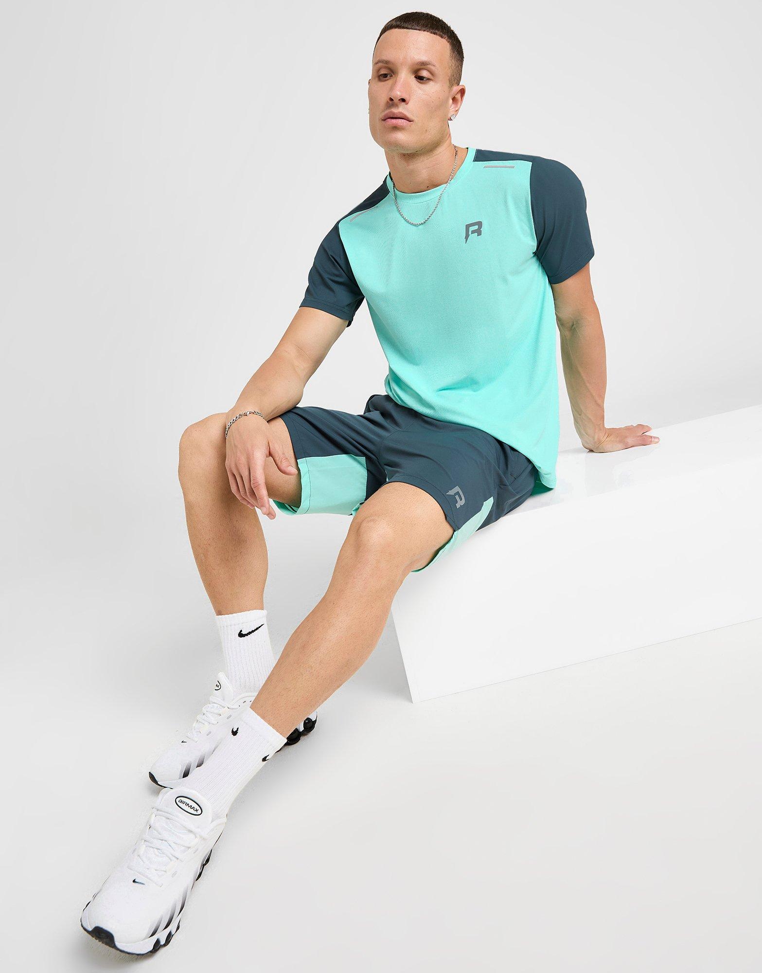 Smash your fitness goals in this men's Flight T-Shirt from Reprimo. In a Cyan and Navy colourway, this slim-fit tee is cut from lightweight, breathable fabric for total comfort. It has a ribbed crew neckline and short sleeves for easy wear, with reflective details for low-light visibility. Finished up with the Reprimo logo on the chest. Machine washable. | Our model is 6'1" with a 36" chest and wears a size M.