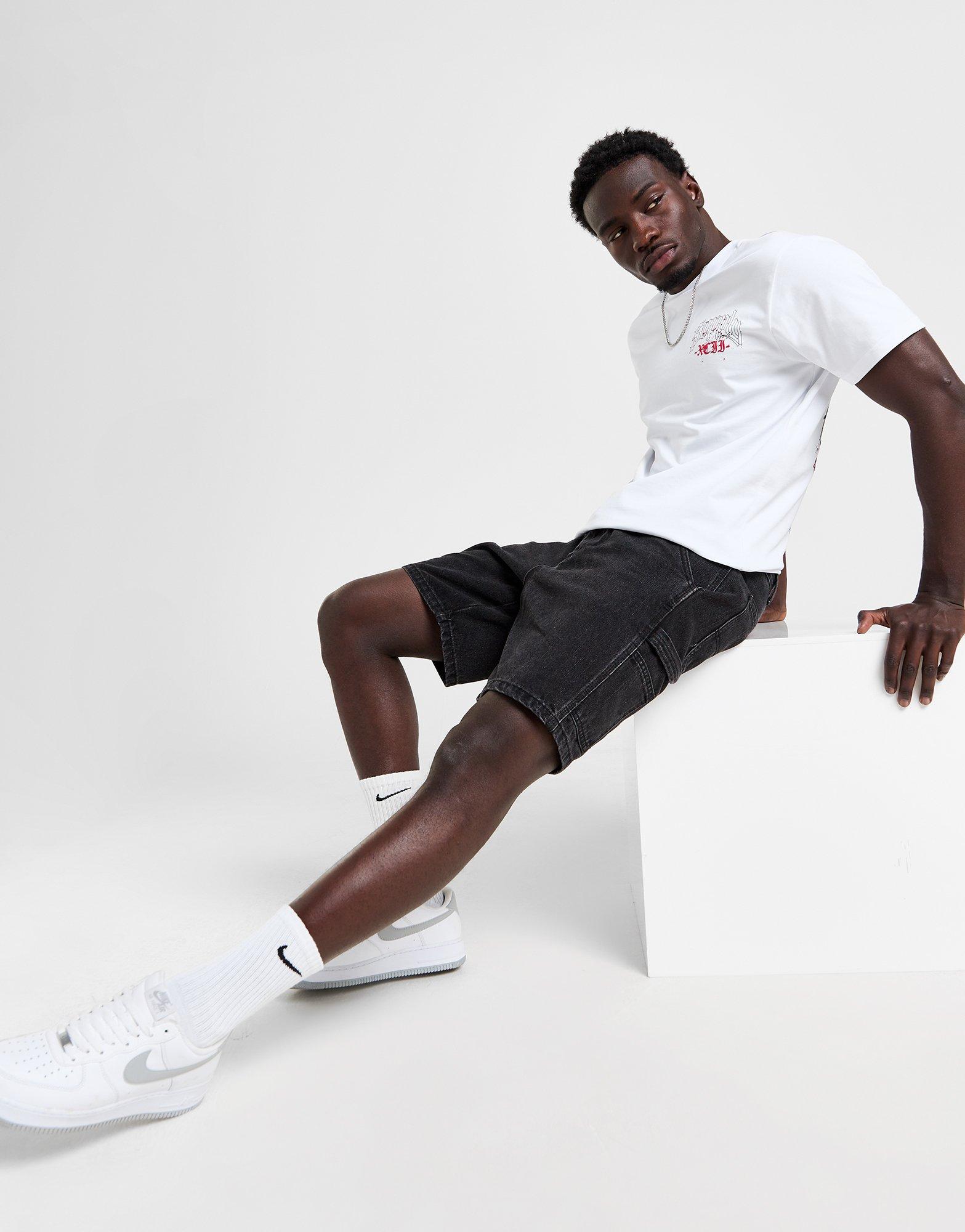 Freshen up your new-season staples with these men's Carpenter Shorts from Supply & Demand. In a Black colourway with a washed finish, these shorts are cut from a durable cotton-rich denim fabric for lasting comfort. They have a mid-rise waistband with a button closure, and belt loops for a secure fit. They have side and back pockets with a classic carpenter-style design, and are finished with Supply & Demand branding to the back. Machine washable. | Our model is 6'1" and wears a size medium.