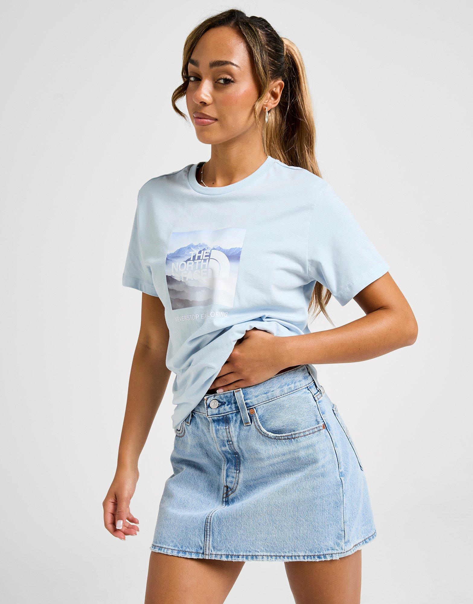 Refresh your everyday style with this women's Cloud Box T-Shirt from The North Face. In a Light Blue colourway, this JD-exclusive tee is cut from soft cotton fabric for everyday comfort. It features short sleeves with a ribbed crew neckline and is finished up with a graphic to the chest. Machine washable | Our model is 5'8" and wears a size S.