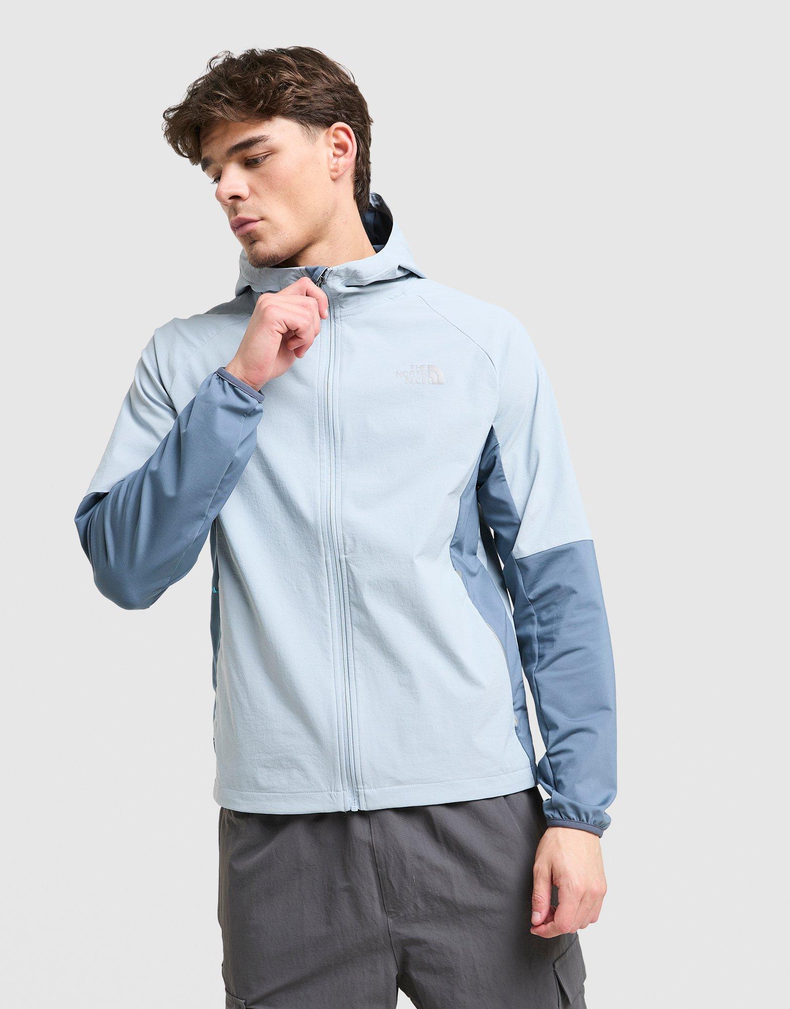 When it calls for a lighter layer, grab this men's Performance Woven Full Zip Hooded Jacket from The North Face. In a two-tone blue colourway, this JD-exclusive windbreaker is made from tough fabric to cut through the wind. A raised neckline and elastic cuffs add coverage. Finished with reflective Half Dome badges on the chest and back. Machine washable. | Our model is 6'2" with a 37" chest and wears a size M.