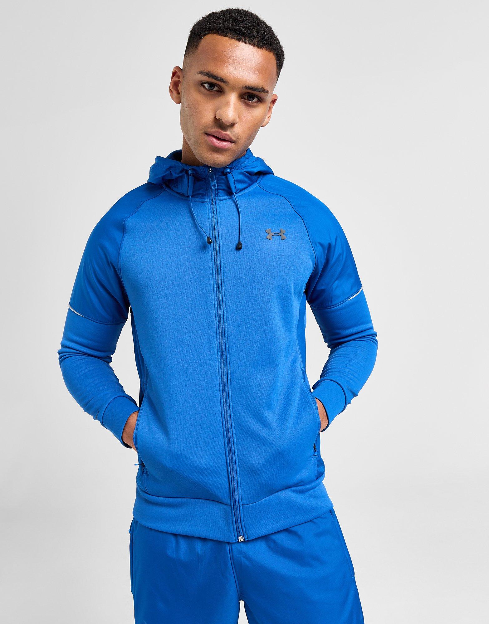 Add a sports-inspired edge to your 'fits with this men's UA Armour Fleece Storm Full Zip Hoodie from Under Armour. In a Tech Blue colourway, this standard-fit hoodie is made with smooth, lightweight Armour Fleece fabric for warming comfort. It's engineered with UA Storm technology for a water-repellent finish, and features a full-zip fastening with an adjustable hood to amp up the coverage. It has stretchy ribbed trims to secure the fit, and zipped pockets for easy storage. Finished with classic Under Armour branding. Machine washable. | Our model is 6'1" with a 39" chest and wears a size medium.