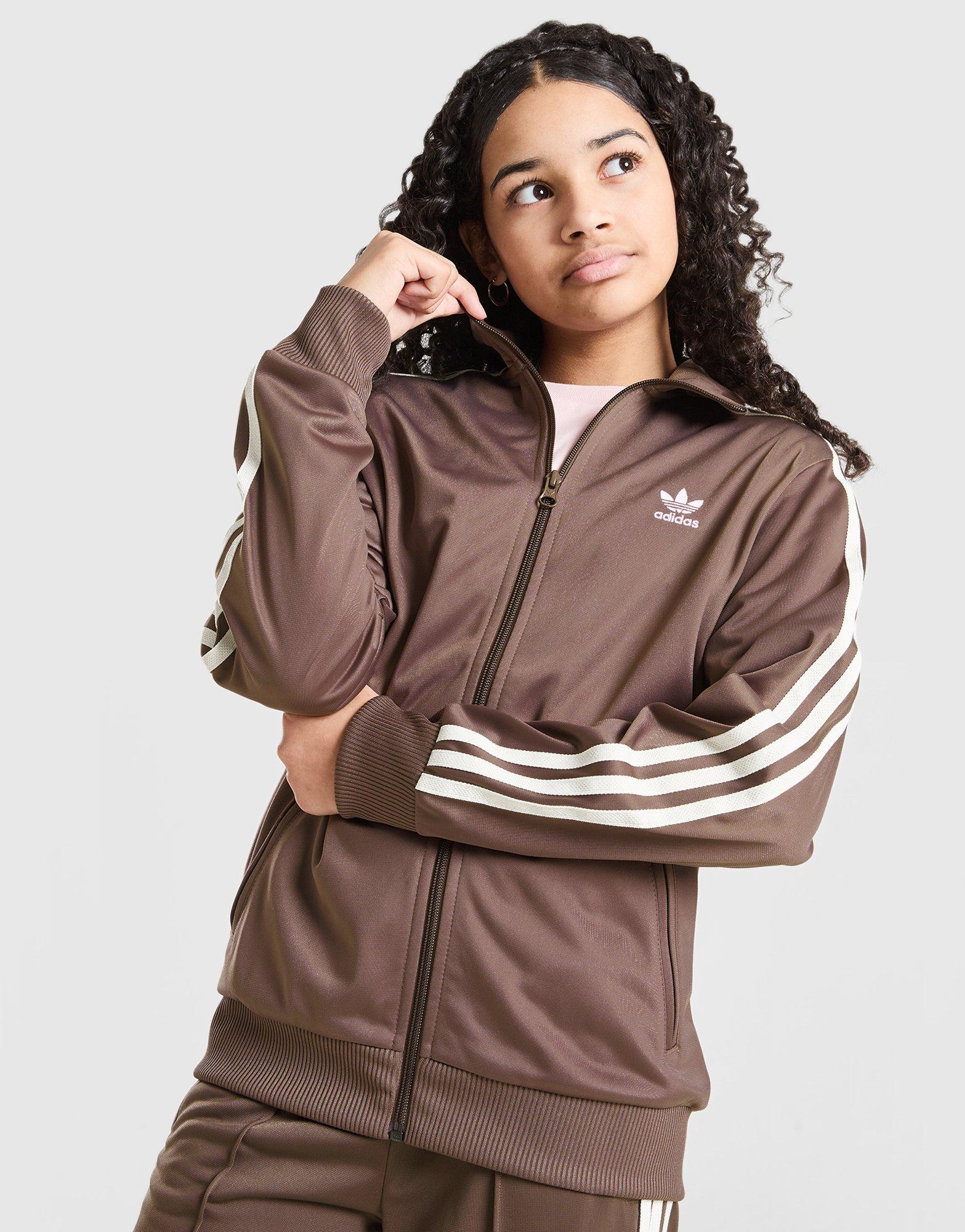Retro vibes. JD-exclusive energy. This junior girls' Firebird Full Zip Track Top from adidas Originals is cut from smooth, recycled fabric. It's got a full-zip fastening and a stand-up collar for coverage. Ribbed trims to hold the shape. And zip pockets for your stuff. In Earth Strata, it's finished with 3-Stripes and Trefoil branding. Machine washable. | KD6729