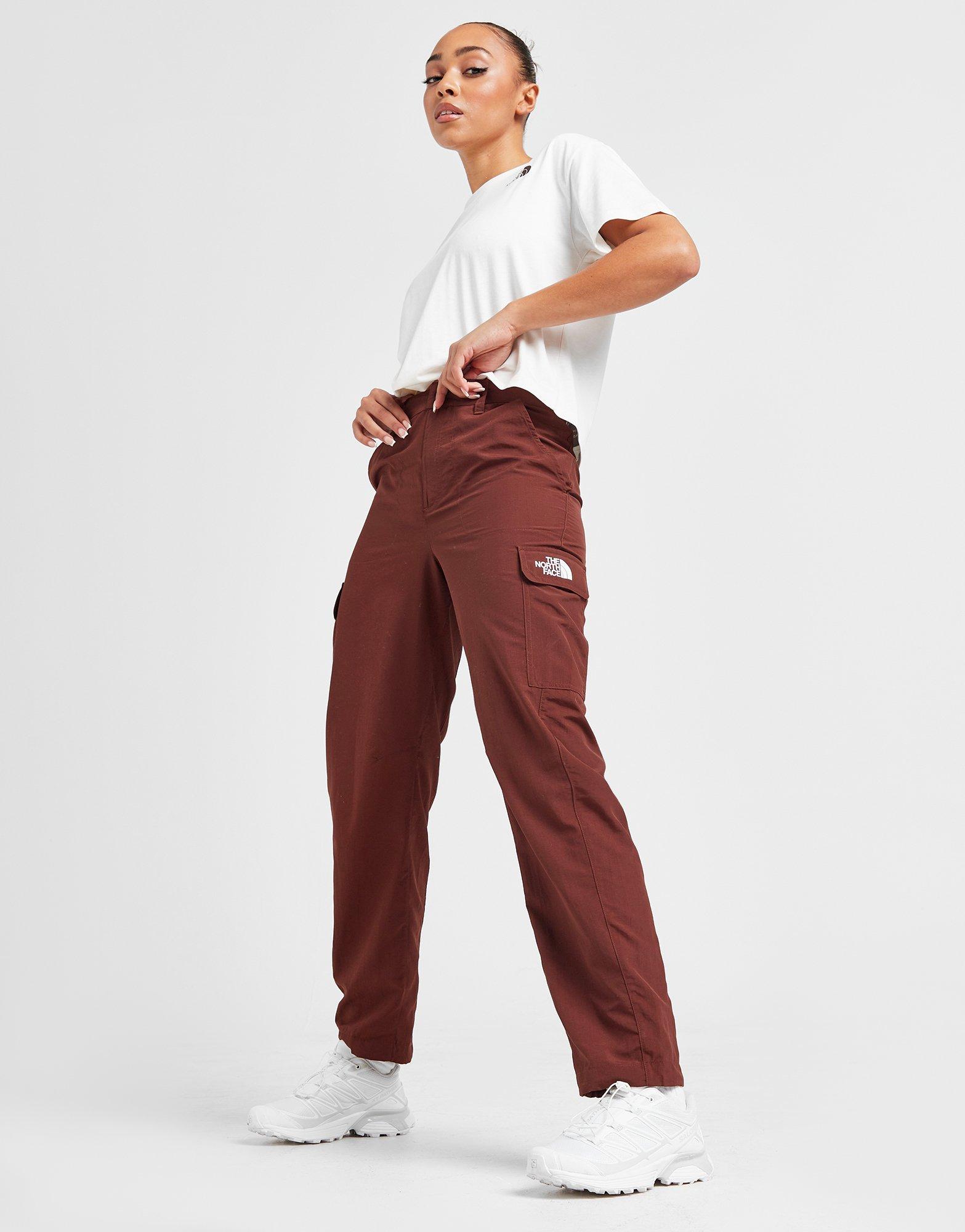 Take your adventures outdoors with these women's Cargo Track Pants from The North Face. In a JD-exclusive Brown colourway, these mid-rise pants have an open hem for a straight leg design, while the button fastening and belt loops on the waistband let you secure them in place. They're made from lightweight yet durable woven poly fabric, with FlashDry-XD tech for cool, sweat-wicking comfort. Finished off with cargo pockets to stash your essentials and White Simple Dome branding. Machine washable. | Our model is 5'8" and wears a size 8.